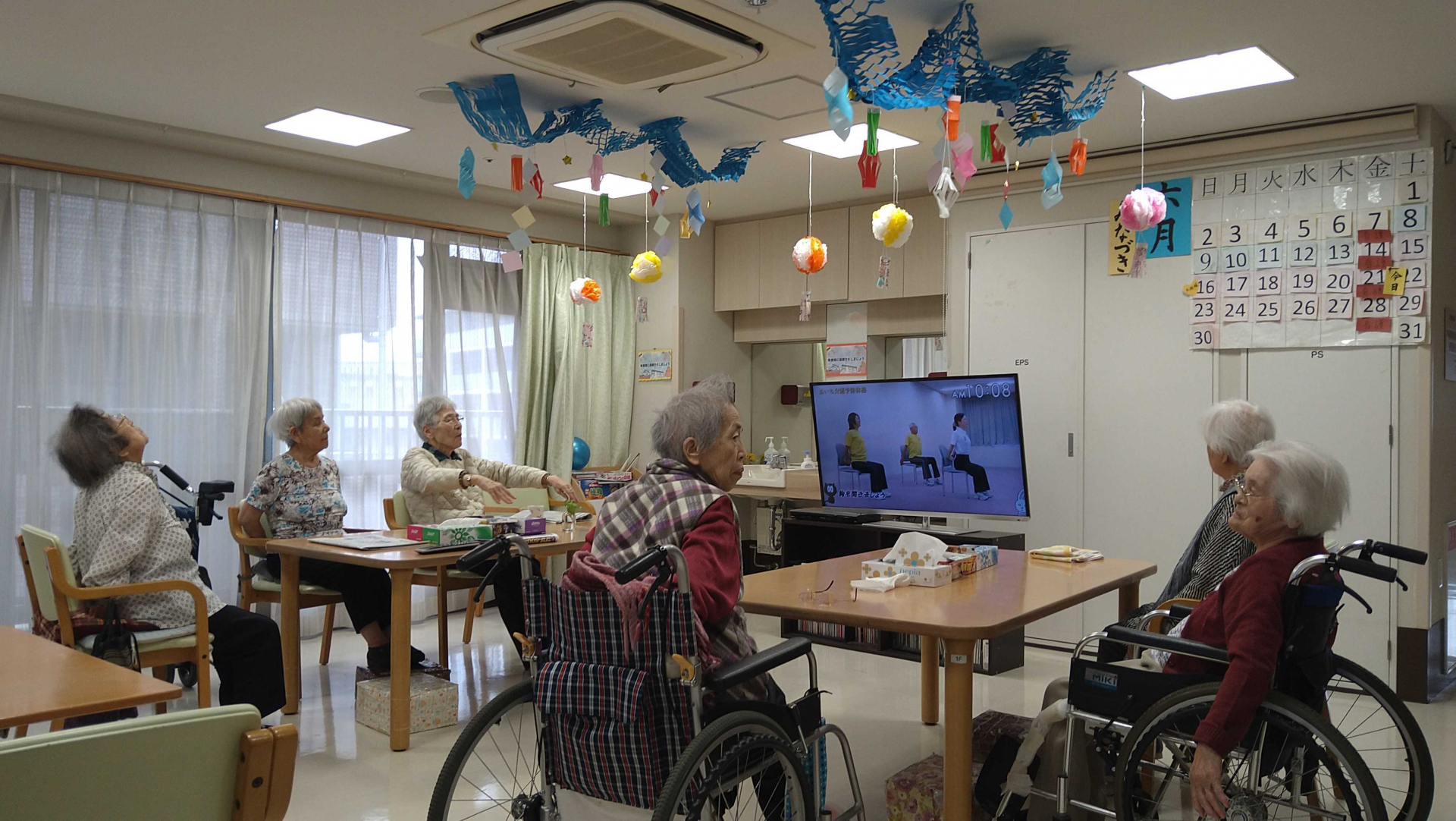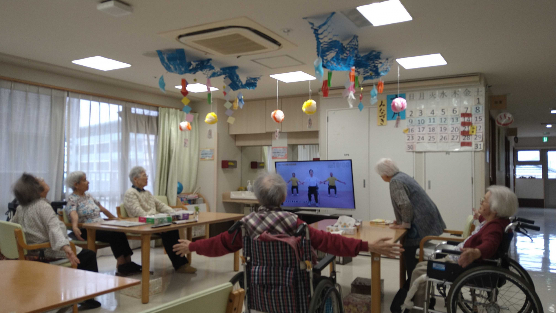 3階では10時のコーヒー時間前に皆で体操を行っています。