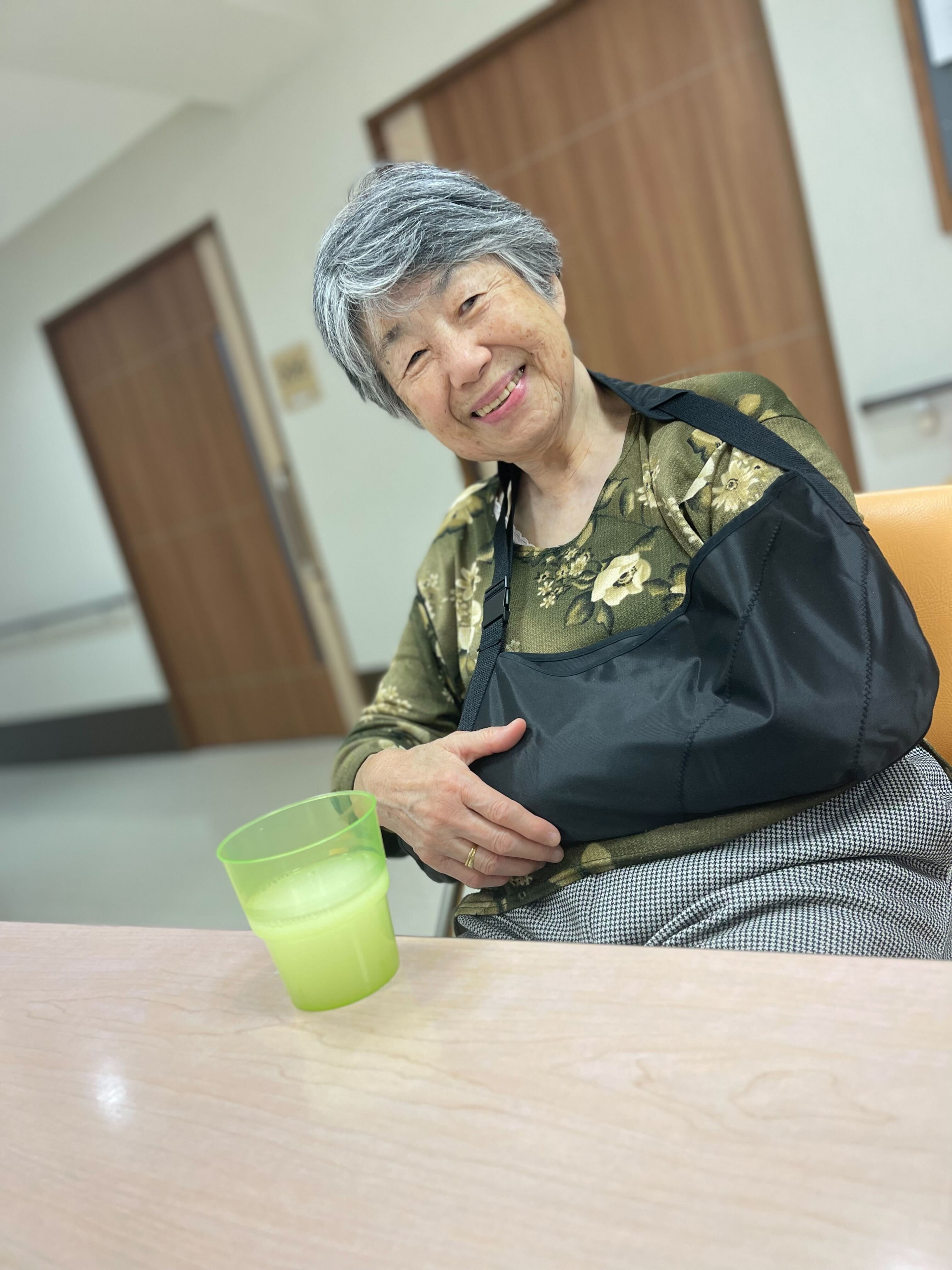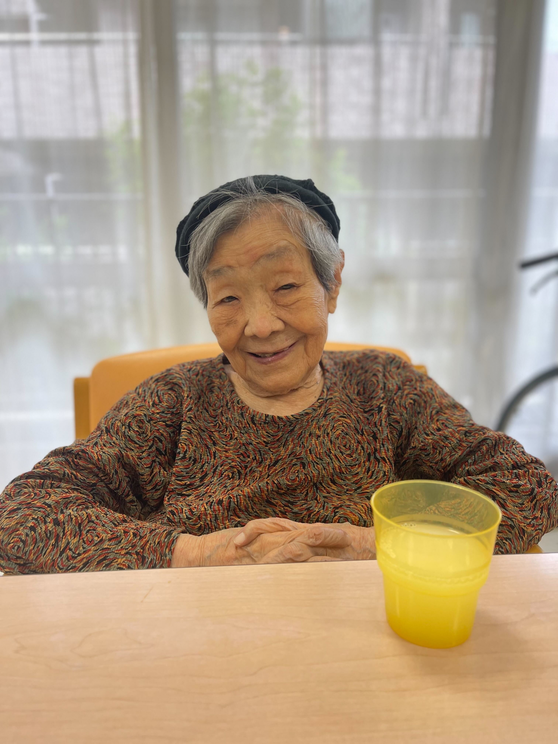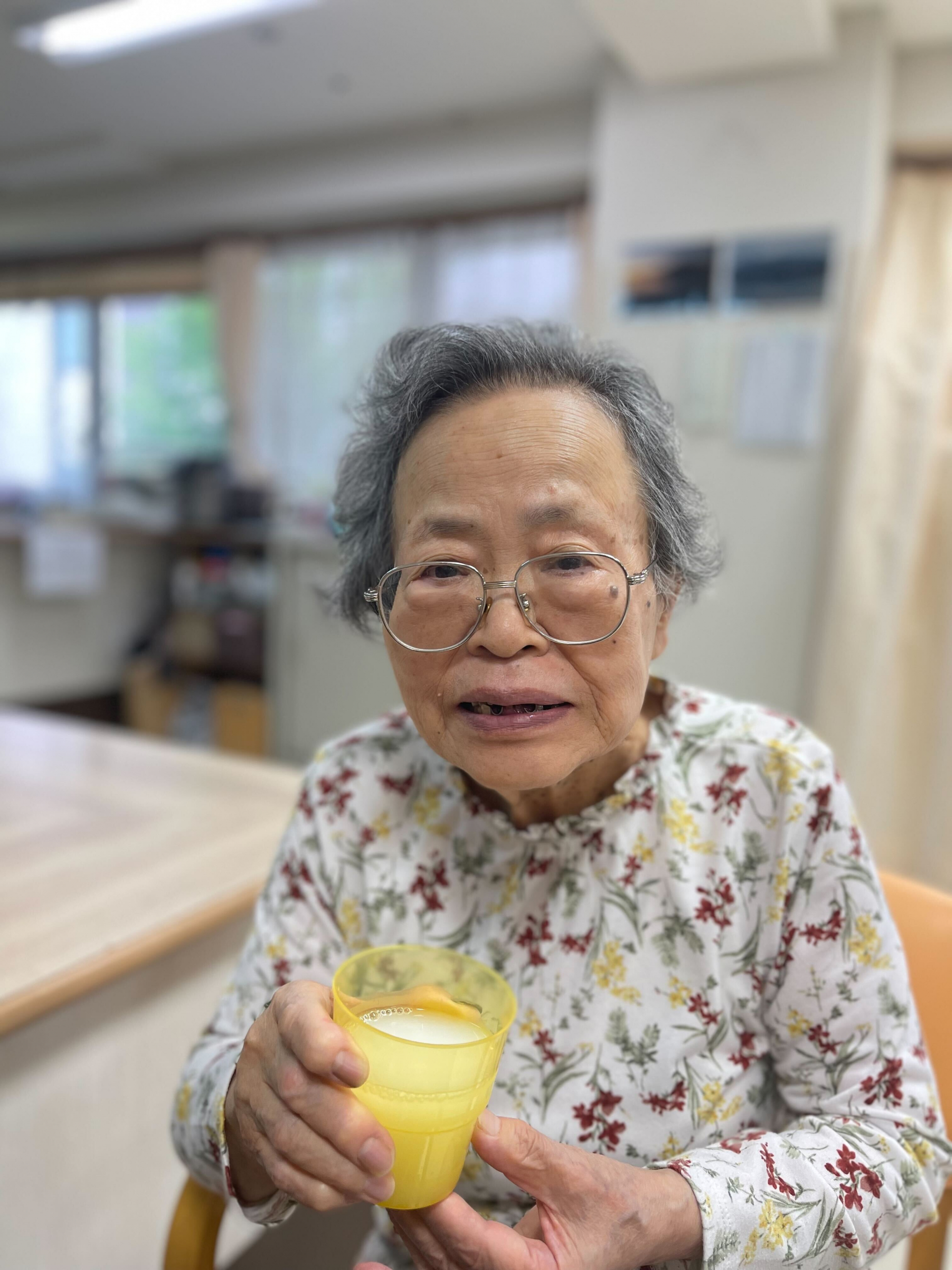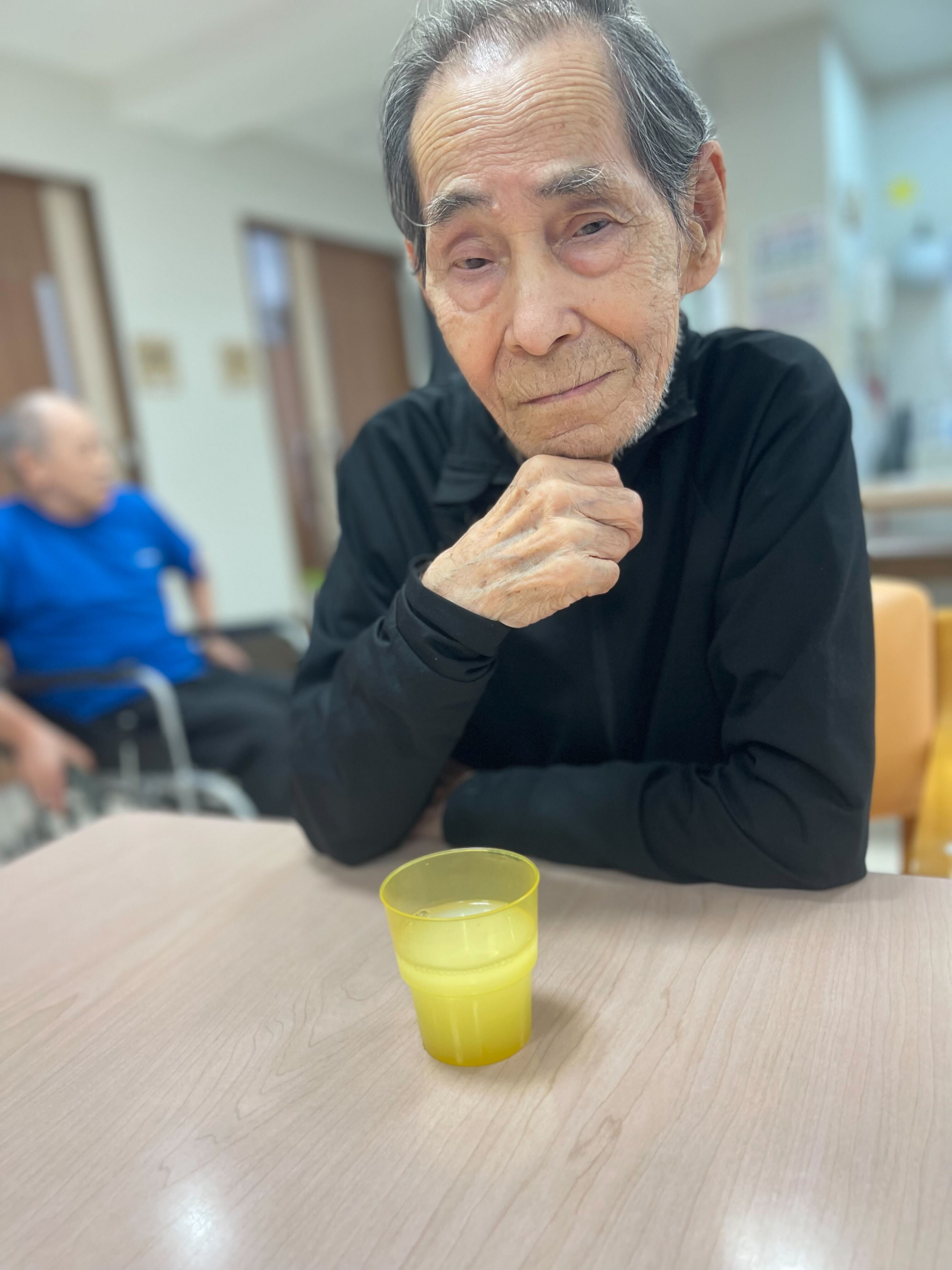 2階の入居様も朝からカルピスを飲んでいます。脱水予防実施にします。