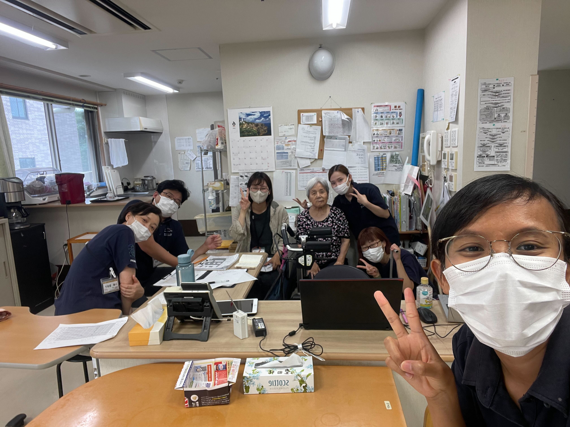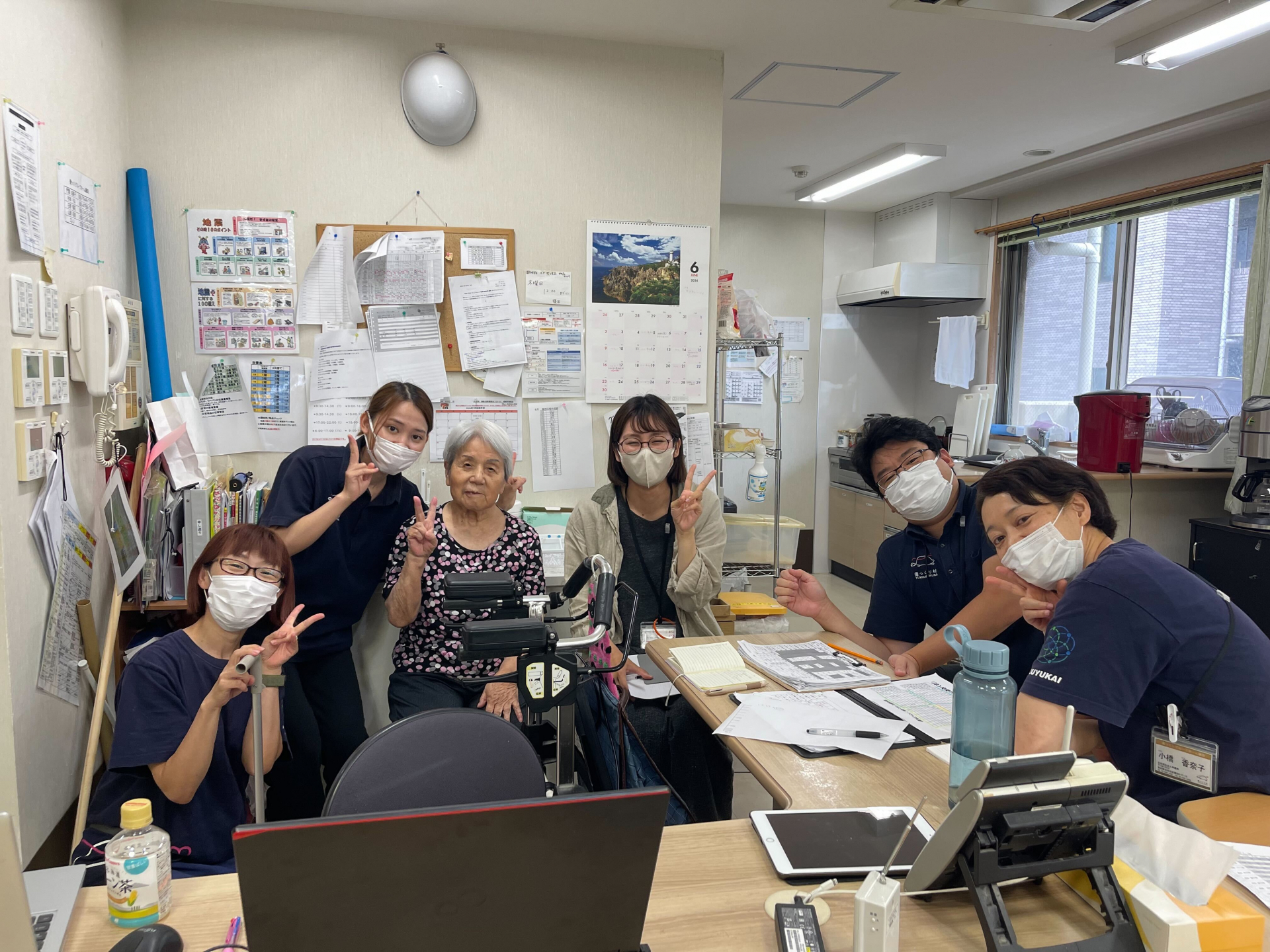 途中でご利用者様も参加しています。その後、一緒に笑いました。