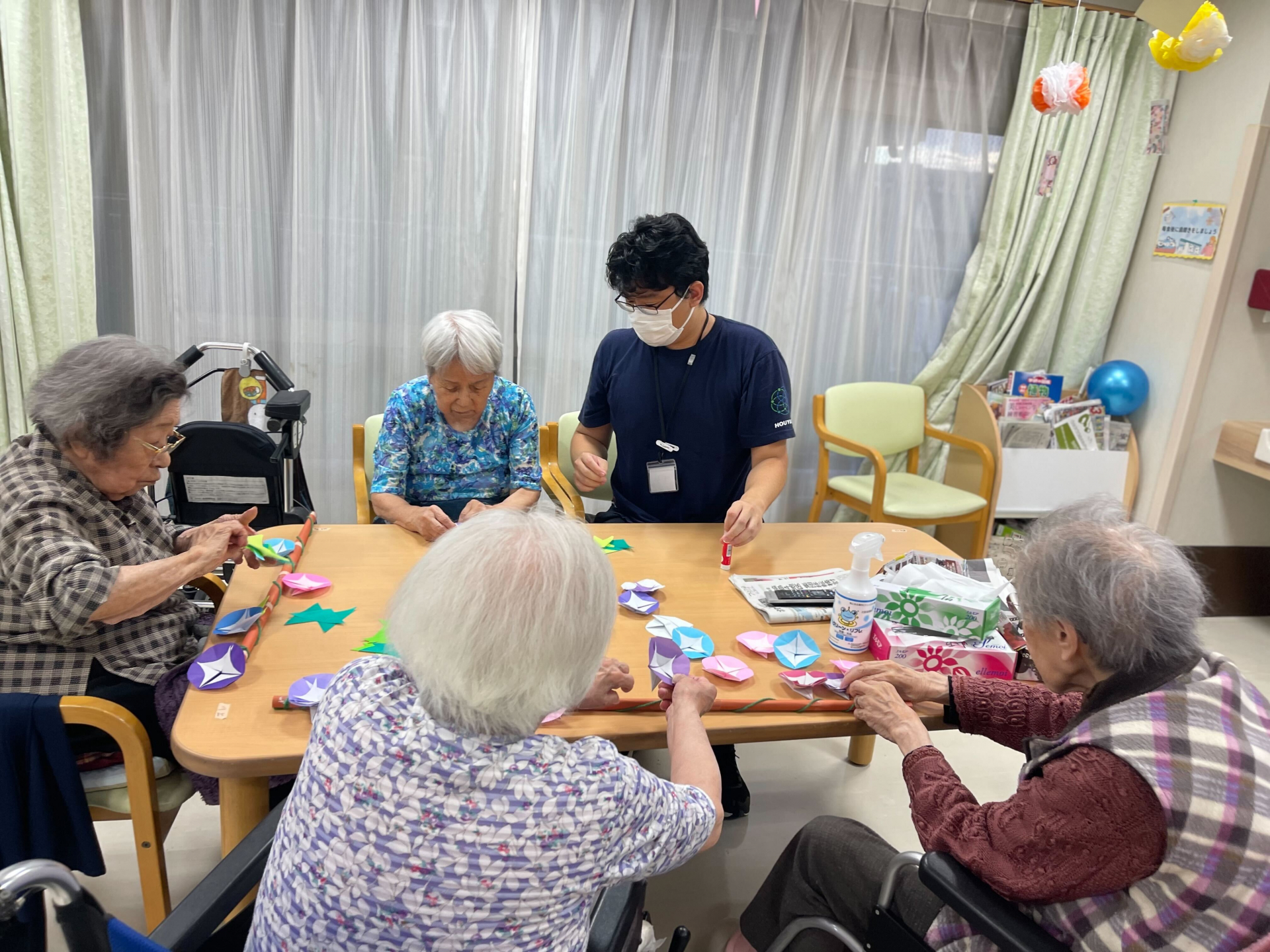 晩御飯の後に皆で折り紙からレクリエーションをやりました。