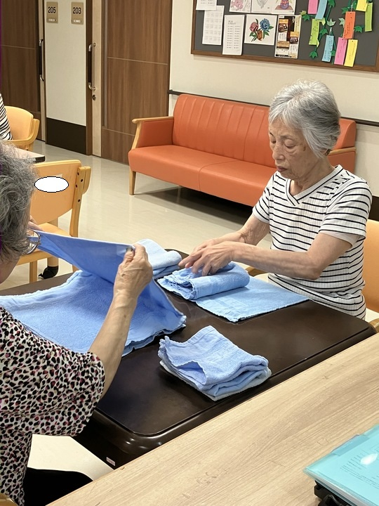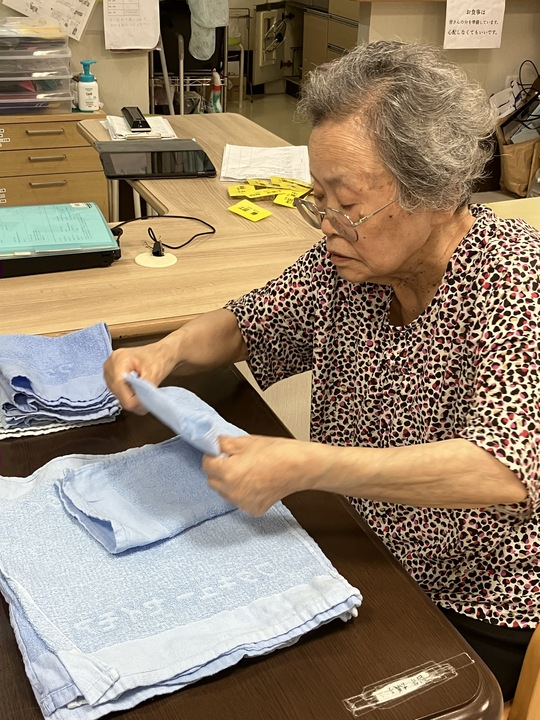 2024.07.14 活動報告 【2F】タオル畳み Tweet シェアする 今日もタオル畳みをしてくださり、皆さまありがとうございます!(^^) みんなですると、あっという間ですね♪ 優っくりグループホーム鎌田 永竹 前の記事 2024.07.14 活動報告 【2F】好きな物を作って食べようの日 次の記事 2024.07.12 活動報告 【1F】流しそうめん 一覧へ戻る