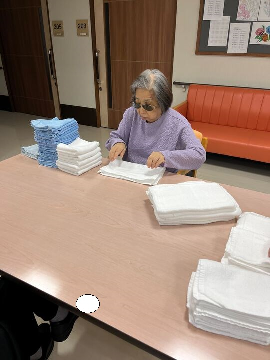 2024.07.28 活動報告 【2F】タオル畳み Tweet シェアする タオル畳みをしてくださる皆様です。 いつもありがとうございます!(^^) 優っくりグループホーム鎌田 永竹 前の記事 2024.07.28 活動報告 【3F】おやつ作り 次の記事 2024.07.24 活動報告 【3F】新聞畳み 一覧へ戻る