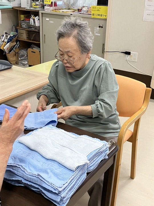 2024.08.17 活動報告 【2F】タオル畳み Tweet シェアする 今日も皆様でタオル畳みをしてくださいました。 いつもありがとうございます! 優っくりグループホーム鎌田 I.N 前の記事 2024.08.19 活動報告 【3F】麻雀 次の記事 2024.08.17 活動報告 【2F】盛付け&洗い物 一覧へ戻る