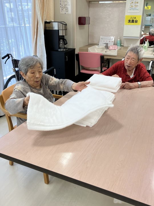 2024.08.26 活動報告 【2F】洗濯物畳み Tweet シェアする 洗濯物やタオルを、皆で手分けして畳みました! 身体を動かしたあとのご飯は美味しいですね(^^) 優っくりグループホーム鎌田 I・N 前の記事 2024.08.27 活動報告 【1F】パンを買ってきます 次の記事 2024.08.24 活動報告 【1F】洗濯物を畳む 一覧へ戻る