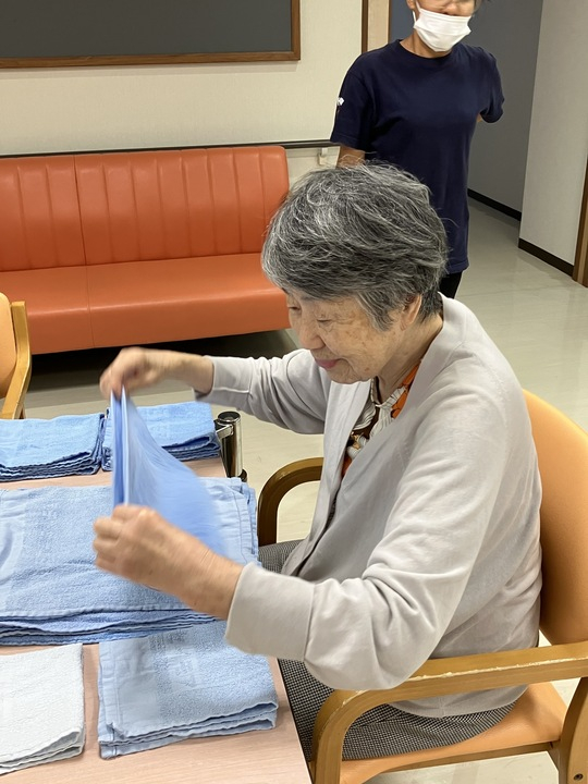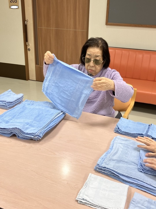 2024.08.29 活動報告 【2F】タオル畳み Tweet シェアする タオル畳みをされる皆さまです。 今日も丁寧に畳んで下り、どうもありがとうございます(^^) 優っくりグループホーム鎌田 I.N 前の記事 2024.08.31 活動報告 【1F】洗濯物を畳む 次の記事 2024.08.29 活動報告 【1F】盛り付けをして下さいました 一覧へ戻る