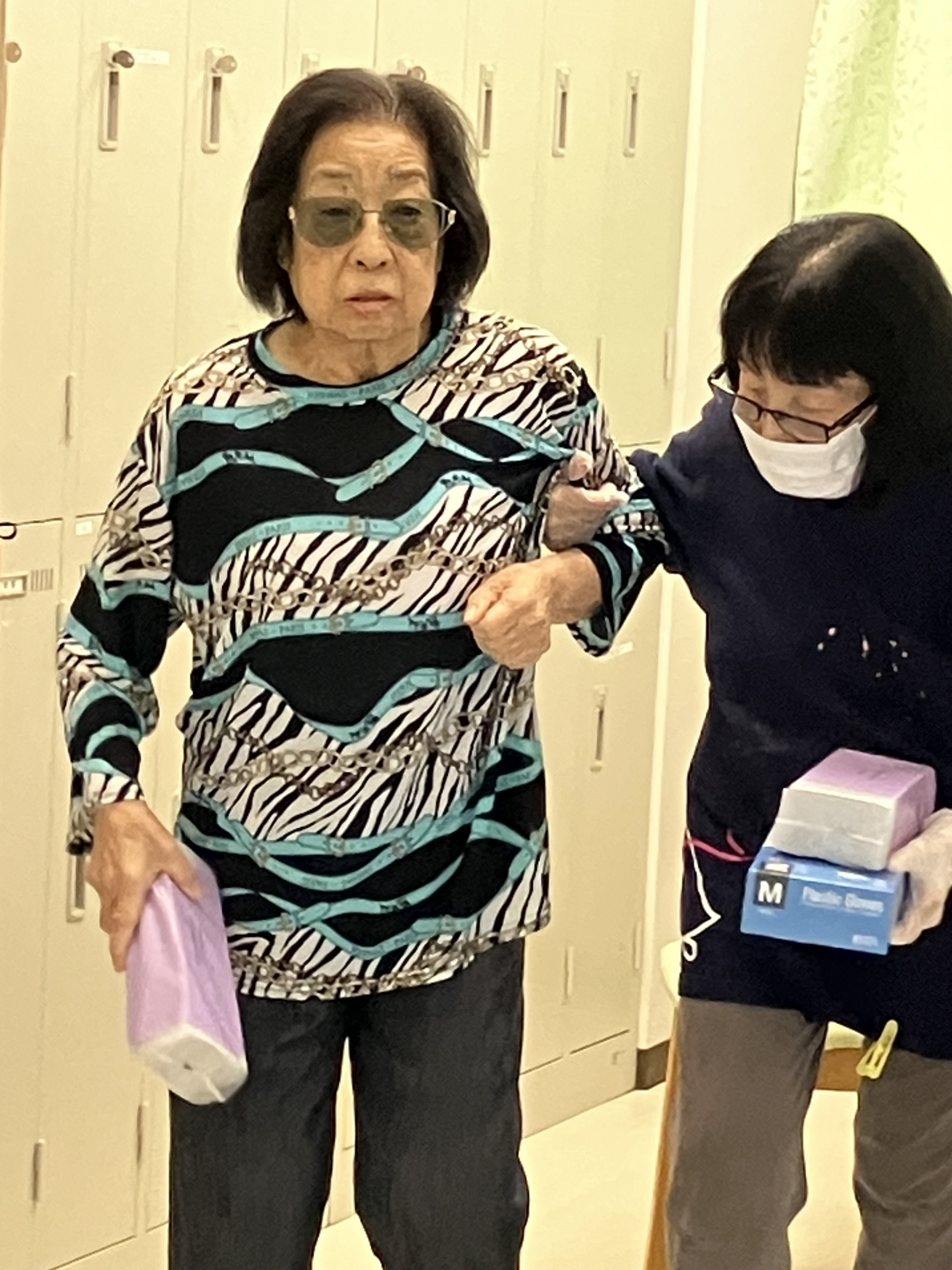 今日は2階の手袋が無くなりましたので、3階の在庫の所に職員と一緒に取りに行きました。