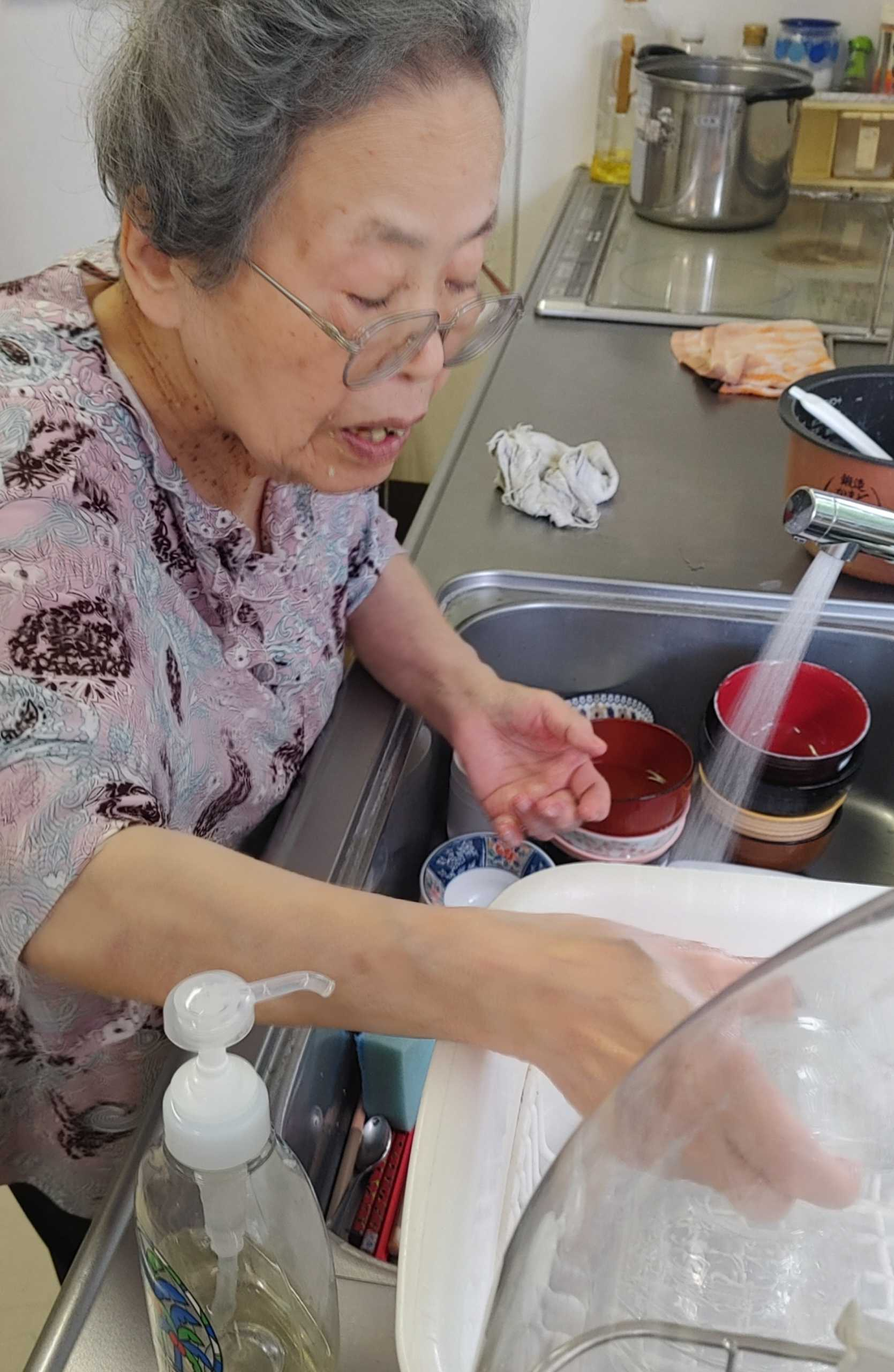 今日のお昼ご飯の後に食器を洗って頂きました。