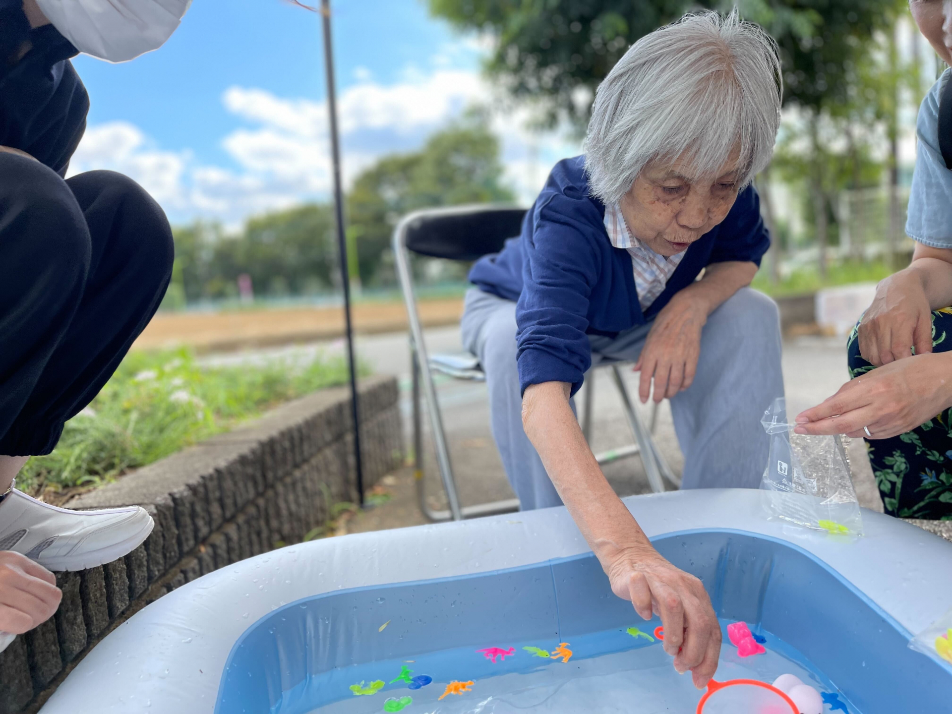 職員の娘と入居者様と一緒に楽しくボールすくいをやってみました。
