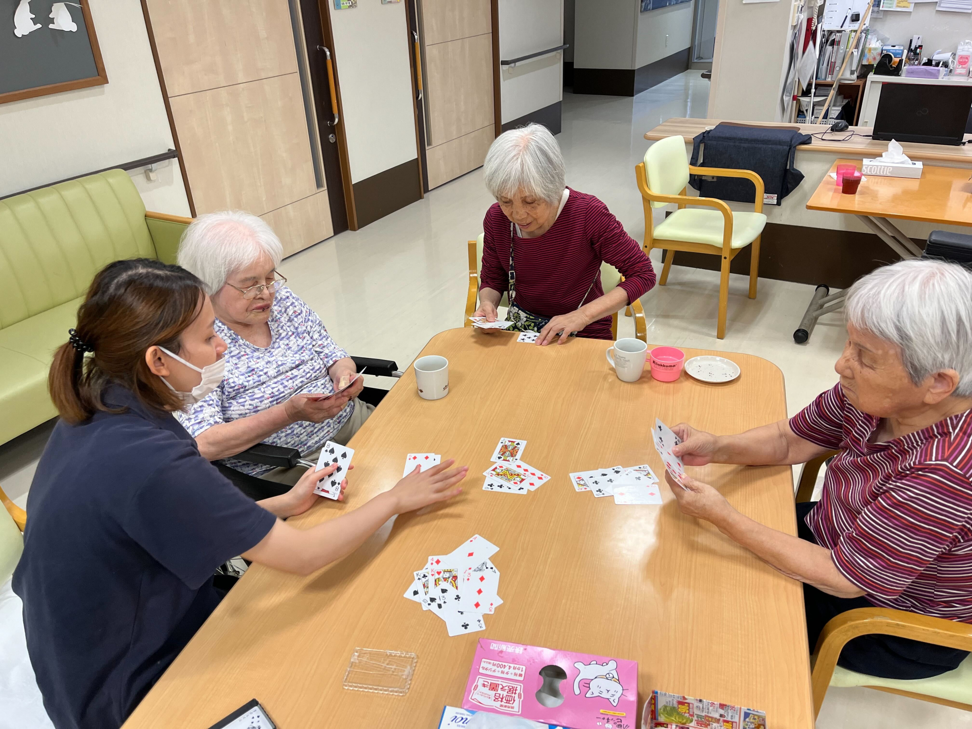 本日、おやつ後に少しいの時間でトランプゲームを一緒にやりました。