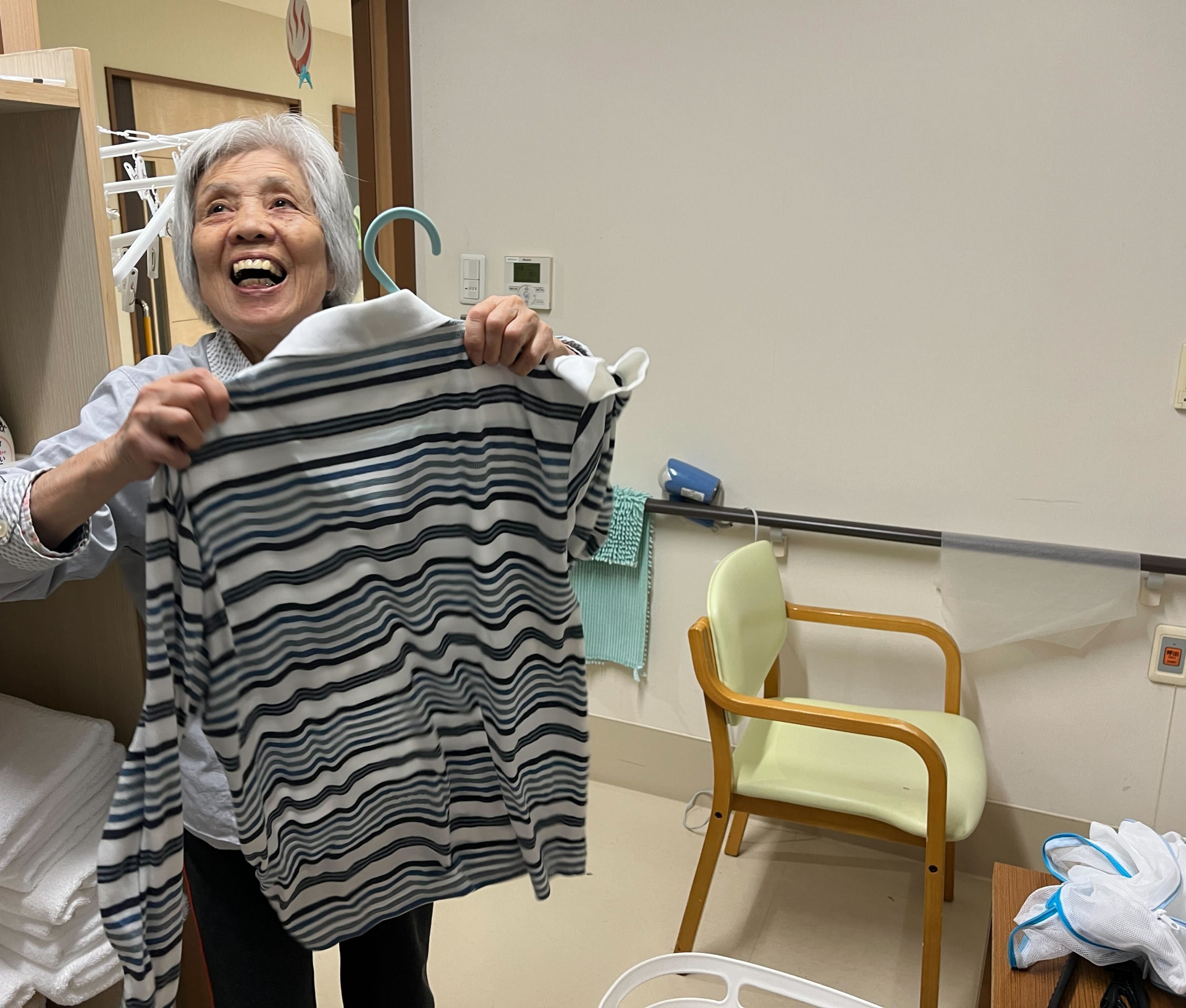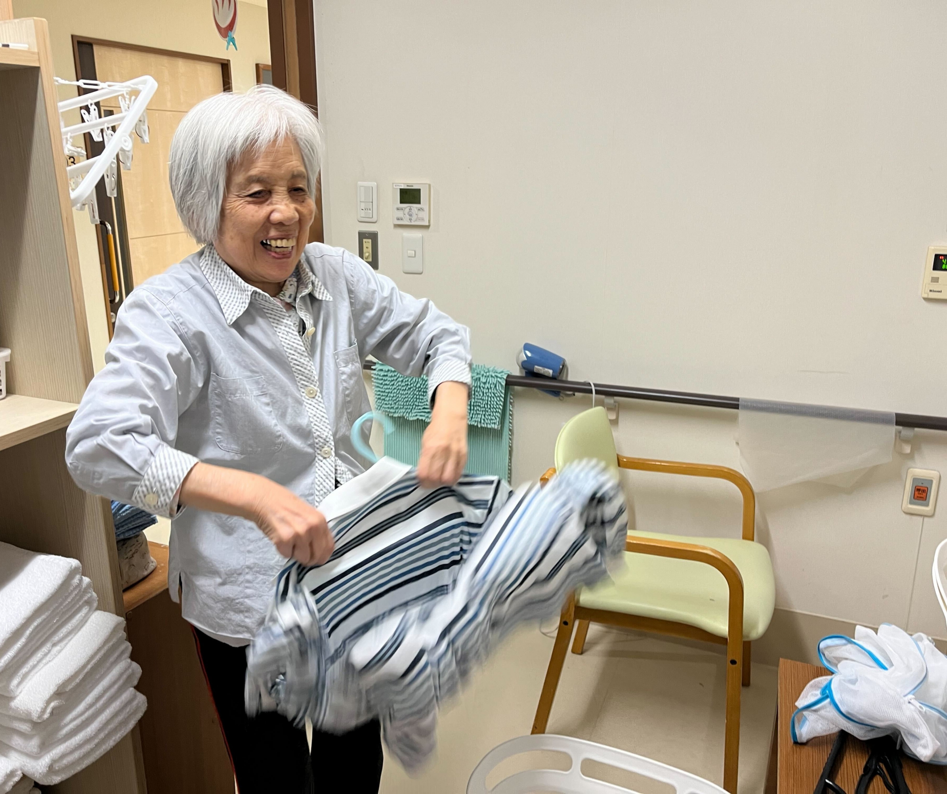 職員がお風呂場のドア開けたままで洗濯物を干したところに「お姉さん、手伝いましょうか?」と仰ってました。