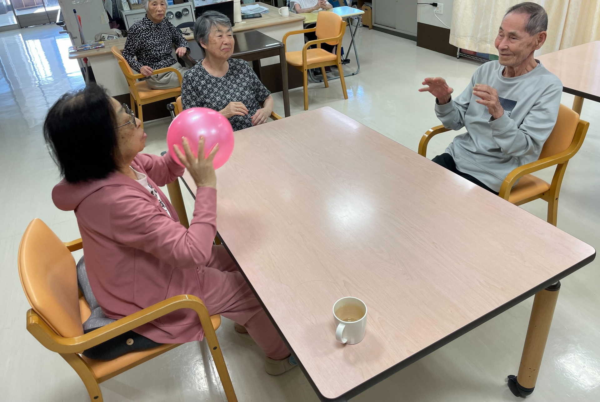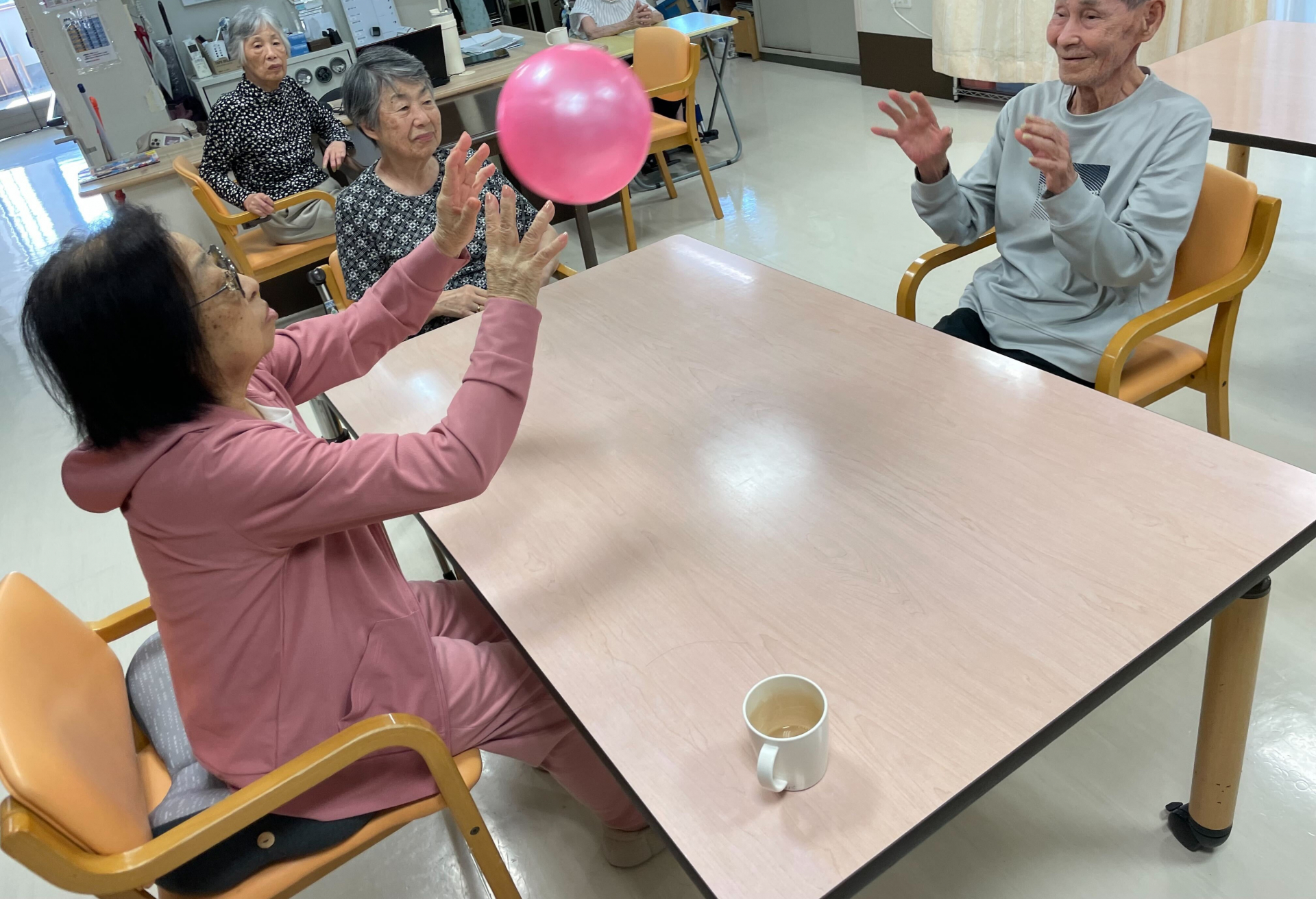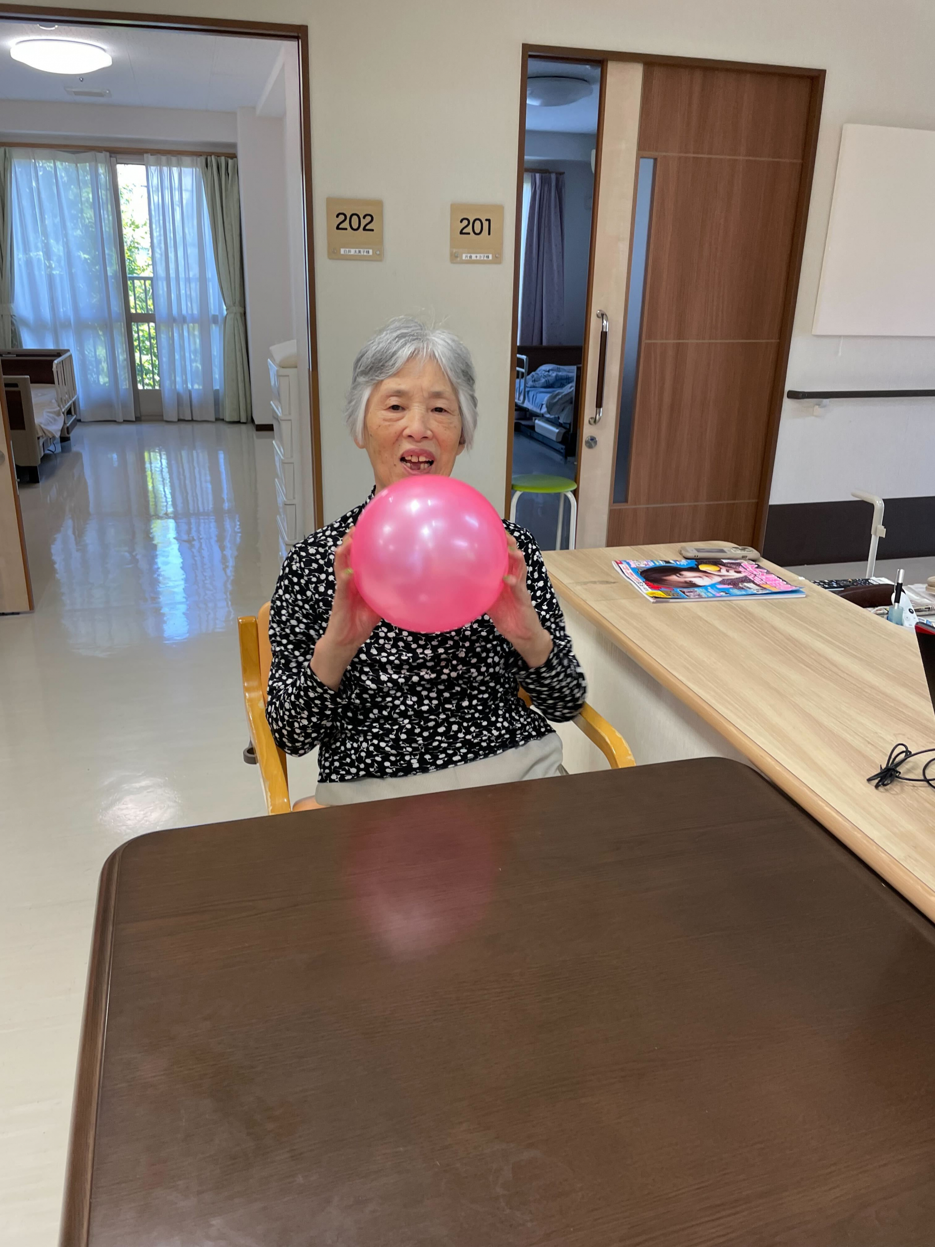 お昼ご飯の前に2階フロアでケアマネジャーと一緒に少しい運動しました。