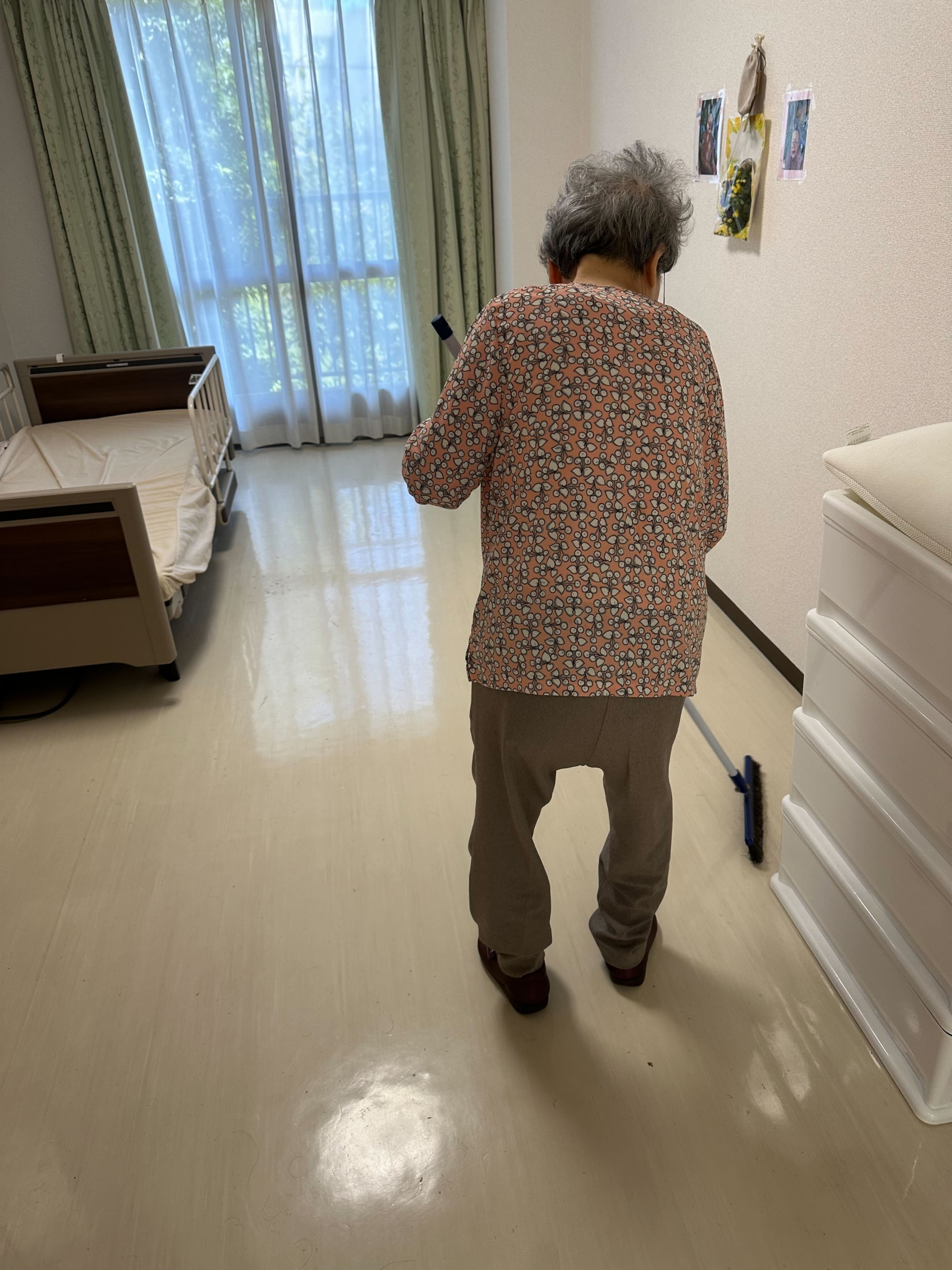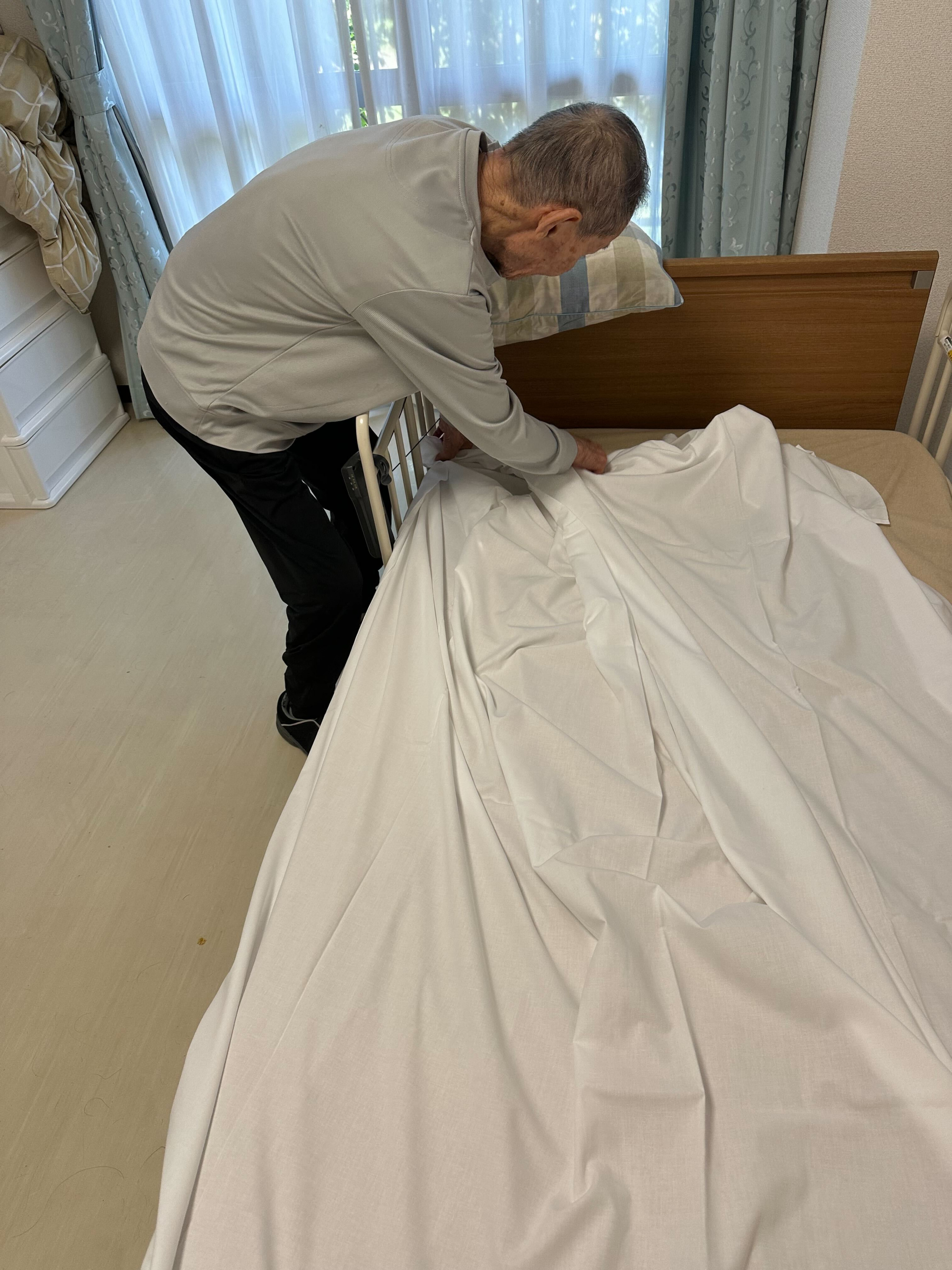 ご入居者様が自分の部屋をリネン交換と部屋掃除をしました。