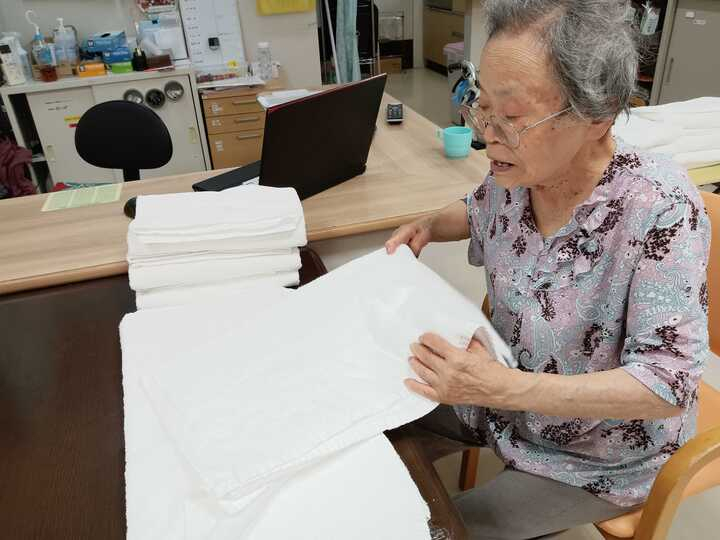 2024.10.06 活動報告 ≪2F≫タオル畳み Tweet シェアする バスタオルを畳んでくださる皆さまです。 いつもありがとうございます! 優っくりグループホーム鎌田 永竹 前の記事 2024.10.09 活動報告 【3階】お茶入れ 次の記事 2024.10.06 活動報告 ≪2F≫お散歩 一覧へ戻る