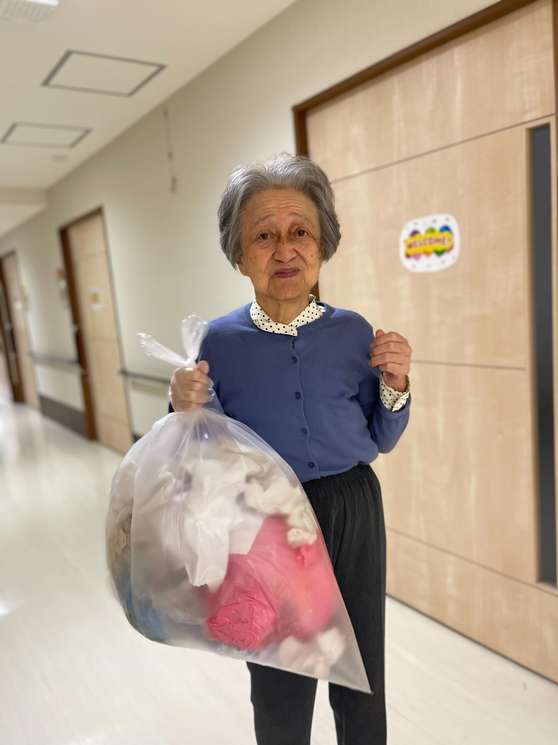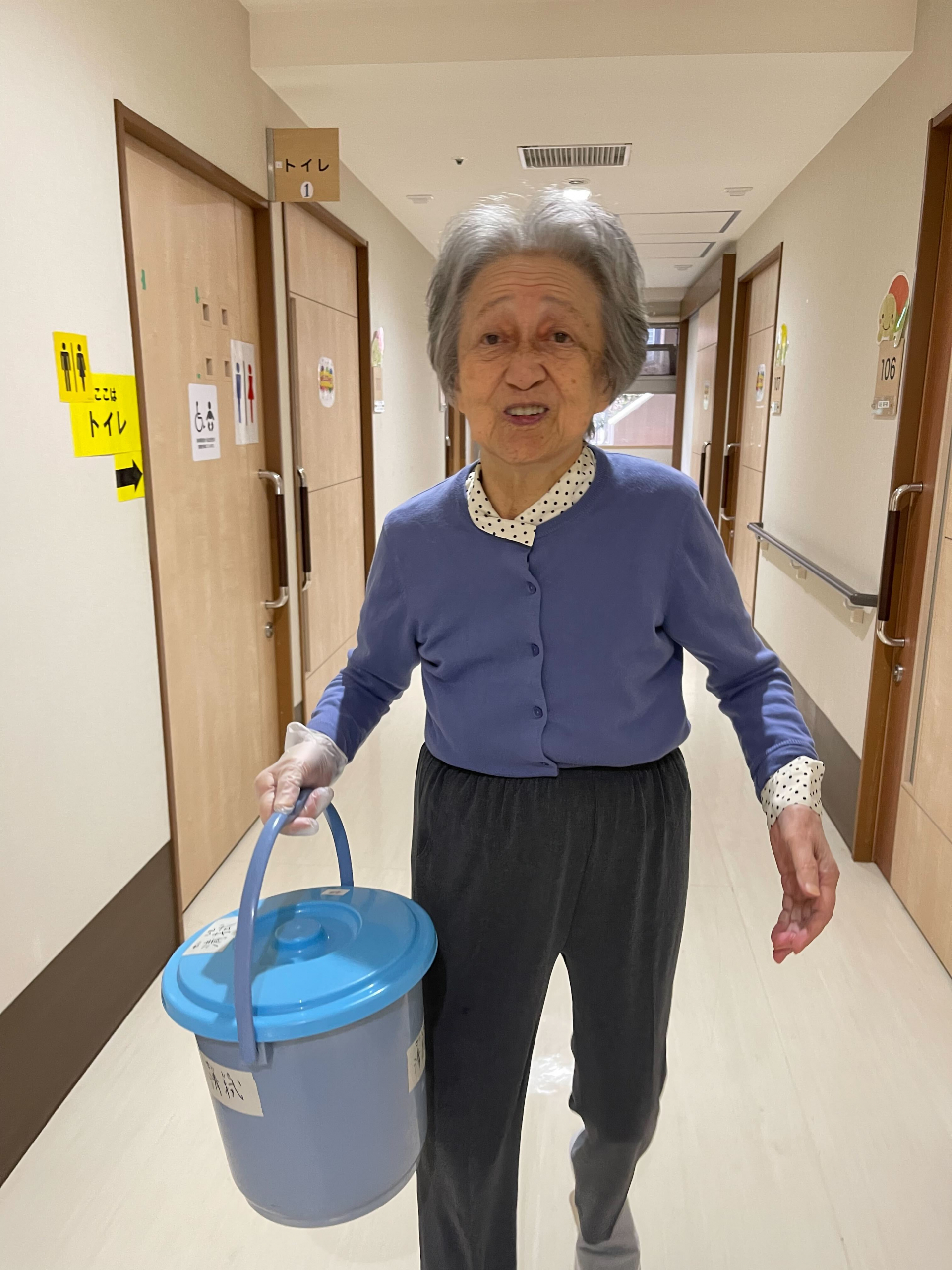 一緒にゴミ捨てましょうかと声かけるときに凄く嬉しそうな顔をしています。「はい、行きましょう」と喜んで仰ってました。