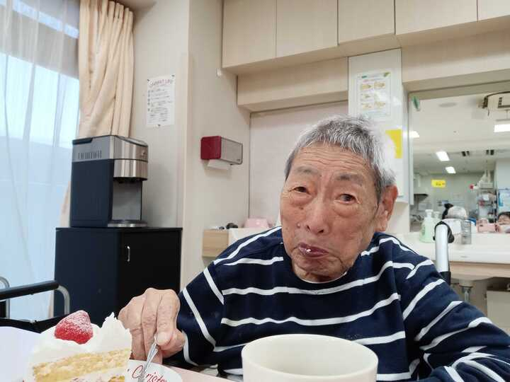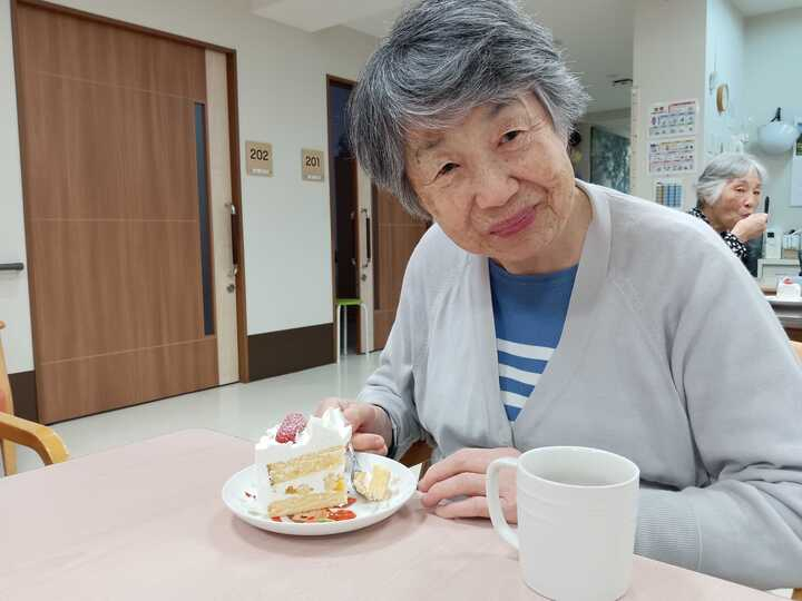 10月お誕生日会にて、ケーキを召し上がる皆さまです。