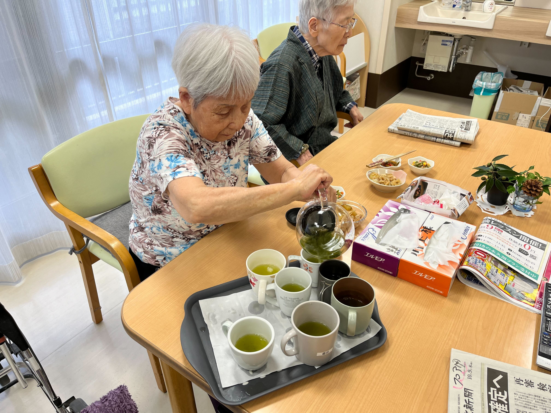 2024.10.09 活動報告 【3階】お茶入れ Tweet シェアする こんにちは! 今日の昼ごはんにお茶を各コップに入れてもらいました。 ありがとうございました。 鎌田GH エレン 前の記事 2024.10.09 活動報告 【3階】夕焼けが綺麗 次の記事 2024.10.06 活動報告 ≪2F≫タオル畳み 一覧へ戻る