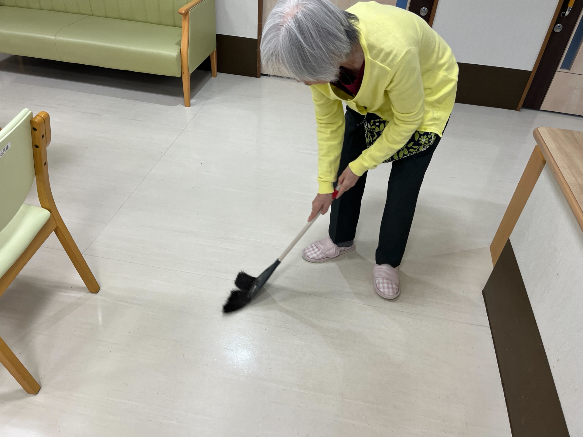 今日の朝ごはんの後に*様と一緒にフロアの掃除をしています。
