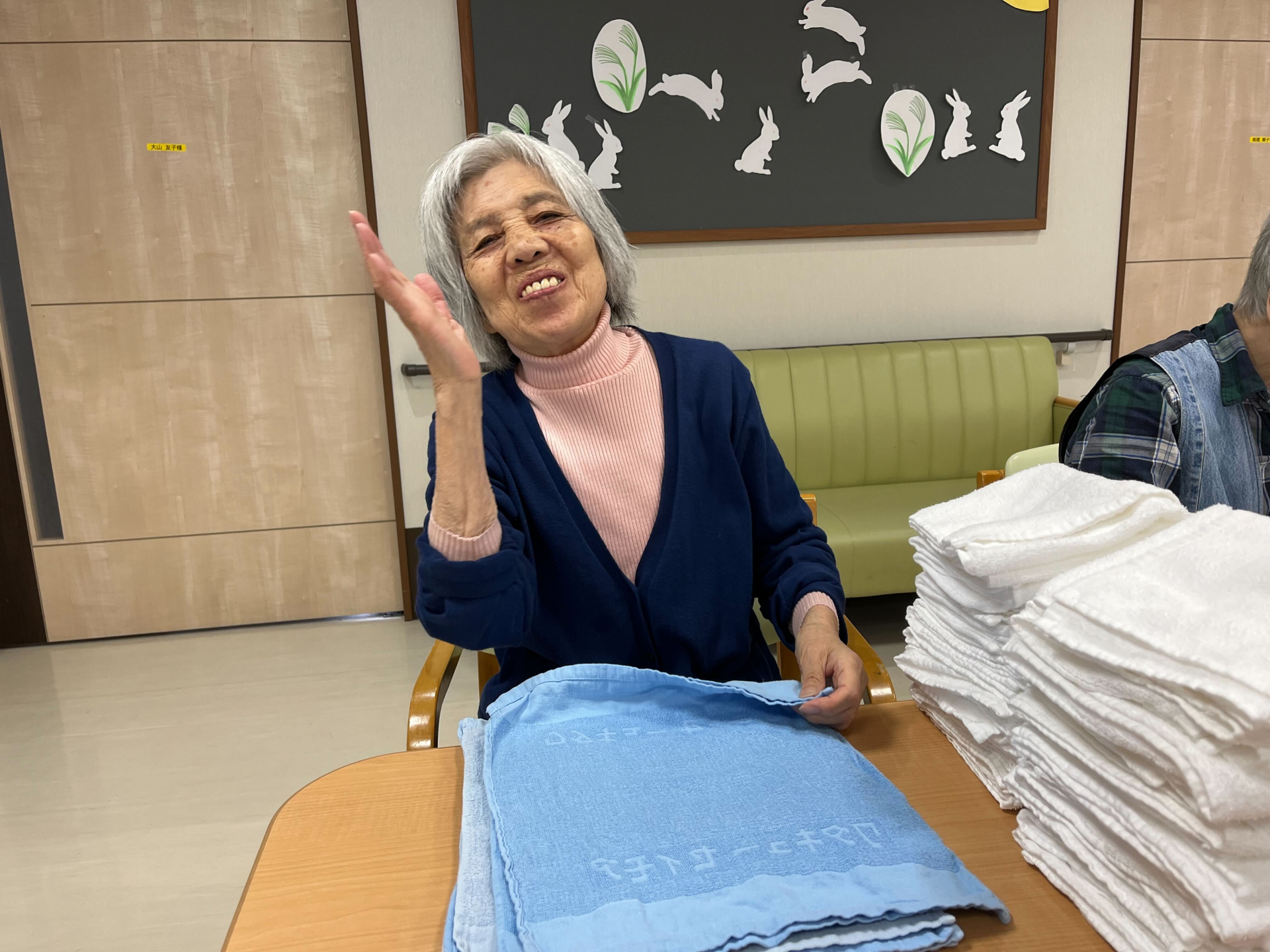 2024.11.06 活動報告 【3階】タオルを畳む Tweet シェアする 今日はタオルを届く日です。 3階に届いたら、すぐ皆で畳んでもらいました。 いつもきれいに畳んで頂いてありがとうございます。 とても助かります。 鎌田GH エレン 前の記事 2024.11.06 活動報告 【2階】塗り絵 次の記事 2024.11.05 活動報告 ≪2F≫塗り絵 一覧へ戻る