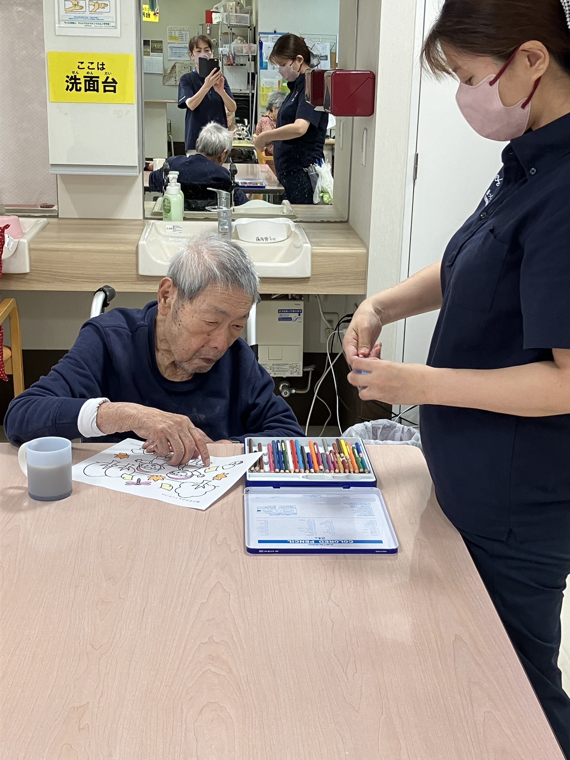 2024.11.06 活動報告 【2階】塗り絵 Tweet シェアする おはようございます。 2階で塗り絵好きなご利用者様が二人います。 今日は塗り絵のレクリエーション時間にしました。 お二人がとても一所懸命塗ってました。 また今度もやりましょうね~ 鎌田GH エレン 前の記事 2024.11.06 活動報告 【3階】麻雀大会 次の記事 2024.11.06 活動報告 【3階】タオルを畳む 一覧へ戻る