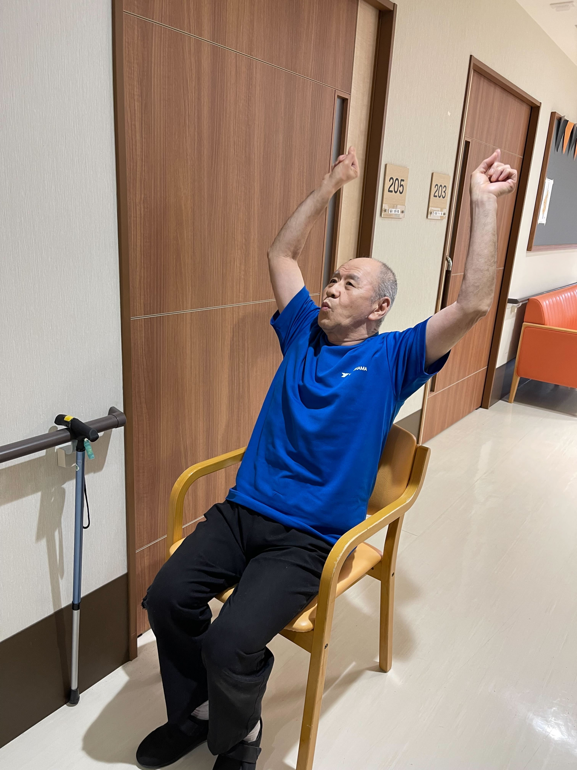 歩く前に、深呼吸から始まって、10回ぐらい手すりをつかまりながら立ちました。