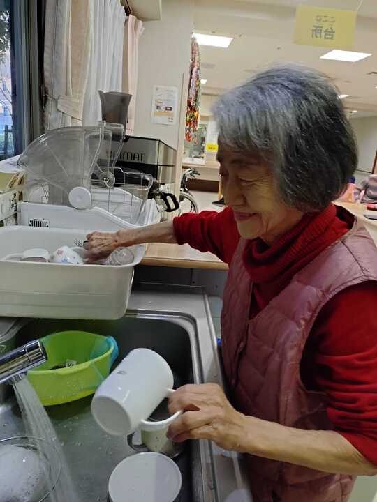 おやつの後、U様が食器洗いを申し出てくださいました。