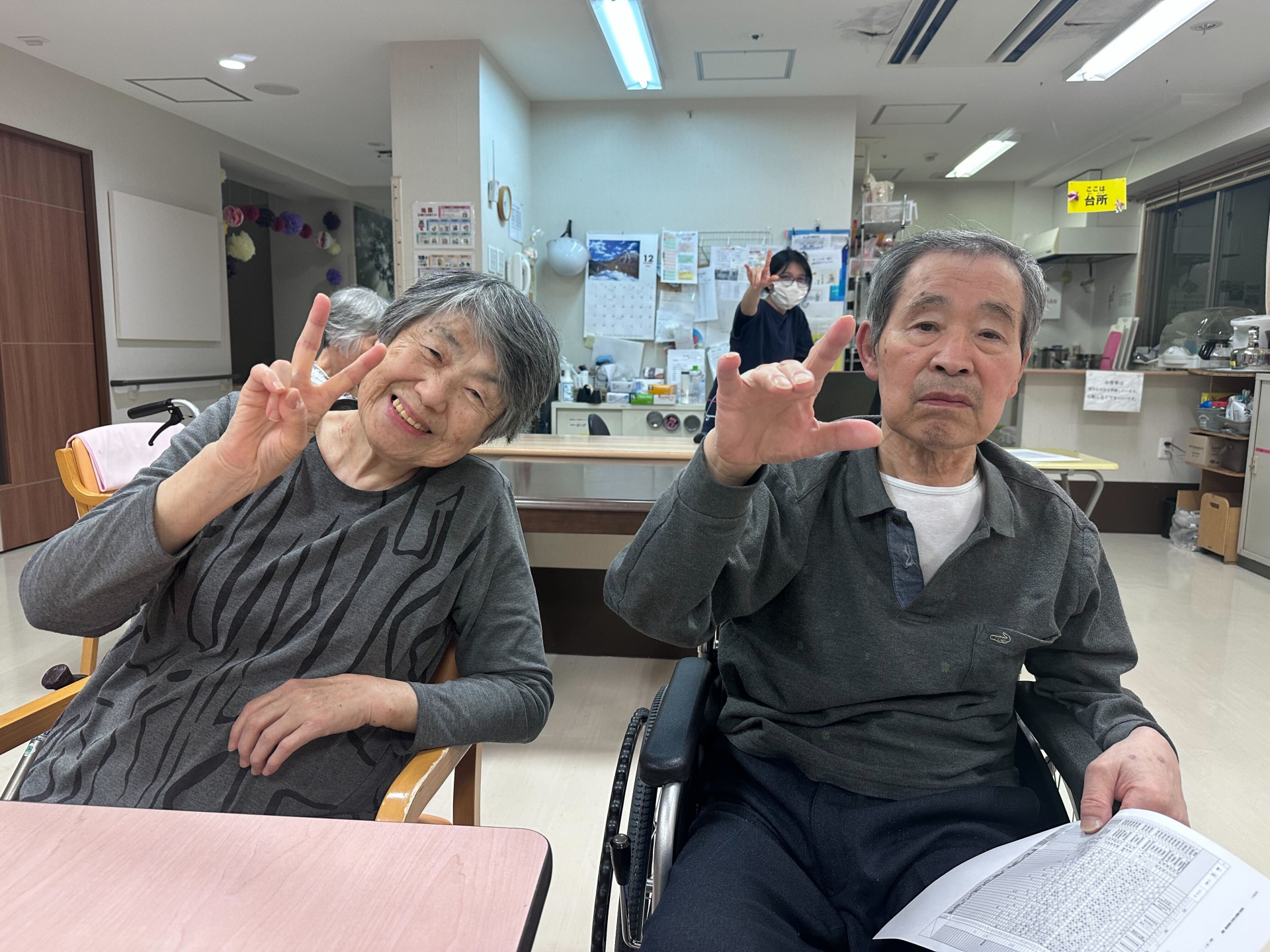 職員が各フロアに変更されたシフトを配ろうとするときに「どこ行きますか?私も行きたい」と3階入居者二人が言ってました。
