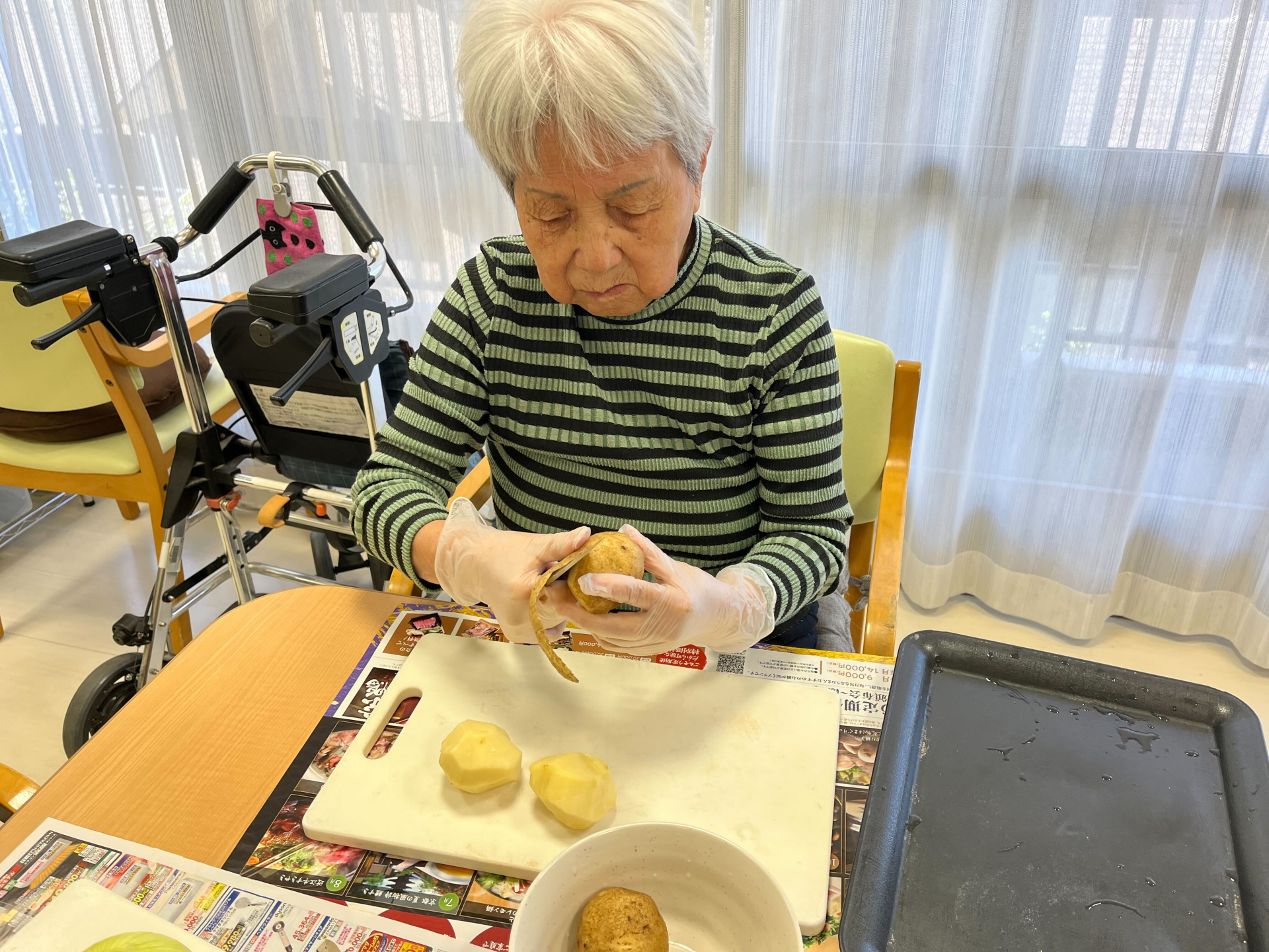 じゃが芋の皮を抜いております。