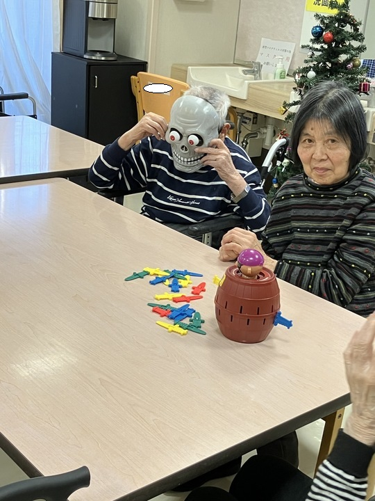 2024.12.21 活動報告 ≪2F≫ 黒ひげ危機一髪! Tweet シェアする 皆で「黒ひげ危機一髪!」で遊びました(^^) なぜか謎の骸骨も登場し、大盛り上がり! 皆で遊ぶと楽しいですね(^^) 優っくりグループホーム鎌田 永竹 前の記事 2024.12.21 活動報告 ≪2F≫ タオル畳み 次の記事 2024.12.21 活動報告 【3階】タオル畳み 一覧へ戻る