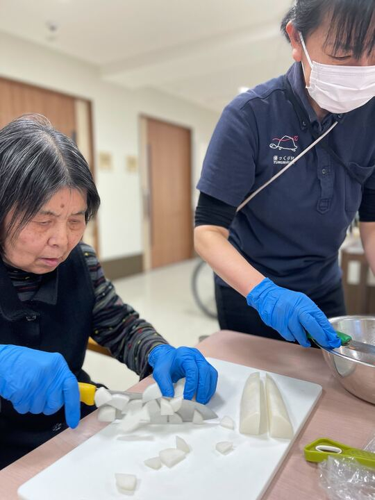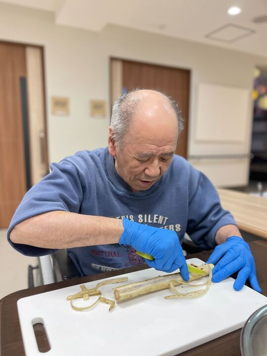 大根やニンジン、ゴボウなど、たくさんのお野菜を剥いて切って、