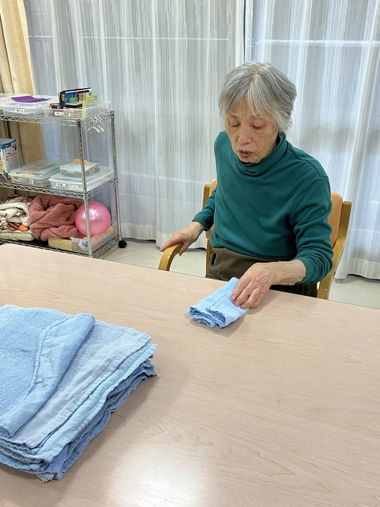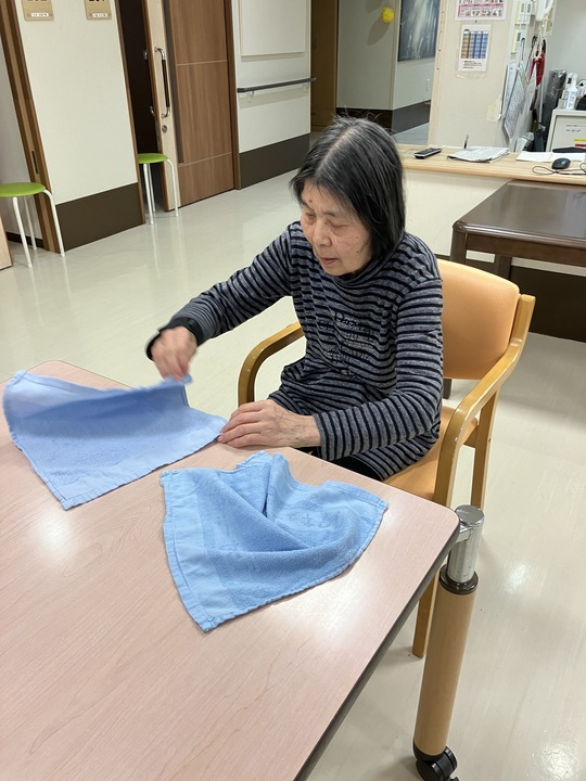 2025.03.17 活動報告 ≪2F≫ タオル畳み Tweet シェアする 皆様でタオル畳みをしてくださいました。 いつも丁寧に畳んでくださりありがとうございます!(^^) 優っくりグループホーム鎌田 永竹 前の記事 2025.03.17 活動報告 ≪2F≫ 訪問美容 次の記事 2025.03.17 活動報告 【1F】みんなで体操です(*^-^*) 一覧へ戻る