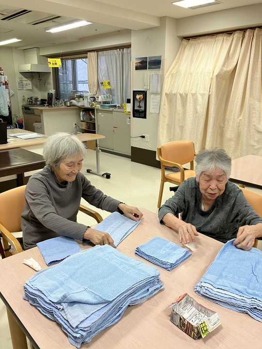 2025.04.15 活動報告 《2F》 タオル畳み Tweet シェアする 皆様でタオル畳みをして下さいました。 協力して行うと、あっという間ですね☆ いつもありがとうございます! 優っくりグループホーム鎌田 永竹 前の記事 2025.04.15 活動報告 《2F》折り紙 次の記事 2025.04.15 活動報告 《2F》 洗濯物畳み 一覧へ戻る