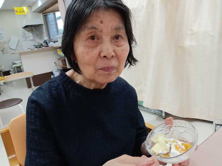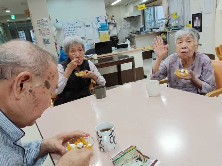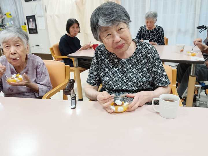 手作りのプリンアラモードを前に、皆でバースデーソングを歌います♪♬