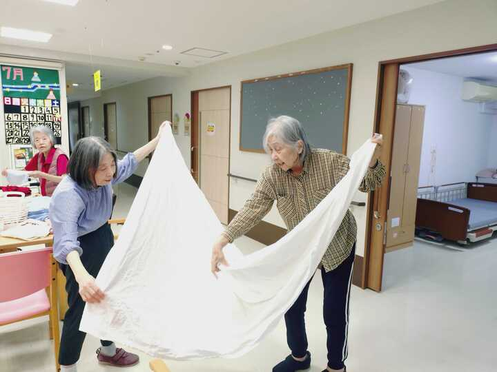 2025.07.13 活動報告 《1F》洗濯物たたみ Tweet シェアする 洗濯物を畳んでくださっているところです。 大きなシーツも二人で畳めば簡単簡単♪ 息の合ったお二人、どうもありがとうございます!(^^) 優っくりグループホーム鎌田 永竹 前の記事 2025.07.14 活動報告 《3F》料理 次の記事 2025.07.12 活動報告 《3F》麻雀 一覧へ戻る