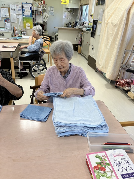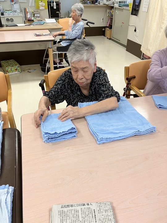 2025.08.06 活動報告 《2F》タオル畳み Tweet シェアする 皆でタオルを畳みました。 いつも綺麗に畳んでくださり、本当にありがとうございます!(^^) 優っくりグループホーム鎌田 永竹 前の記事 2025.08.06 活動報告 《2F》ボール&トランプ遊び 次の記事 2025.08.06 活動報告 ≪1F≫塗り絵 一覧へ戻る