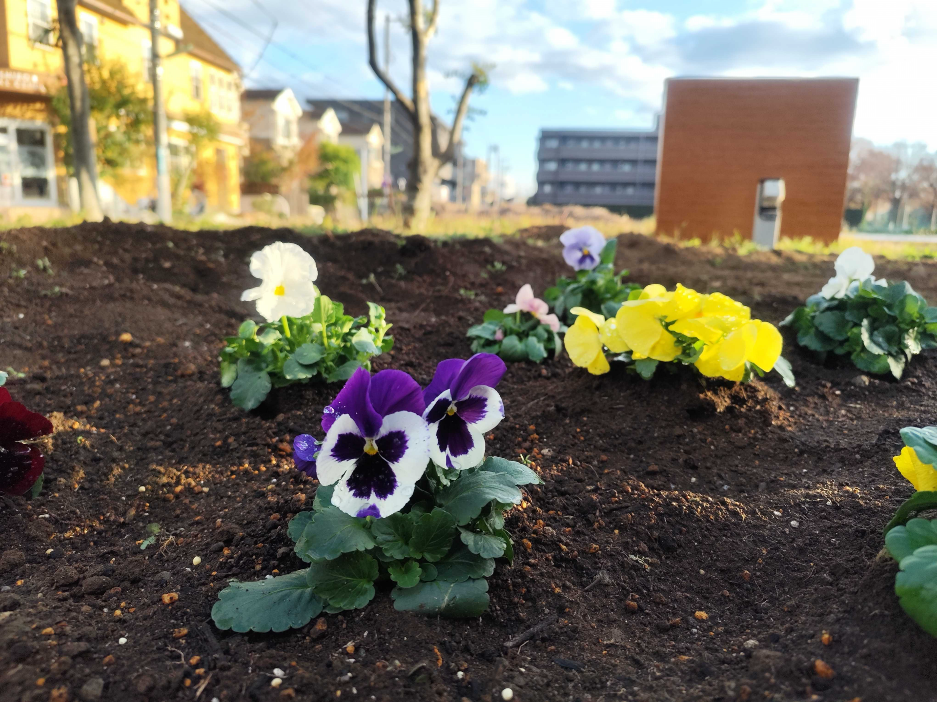 優っくり村鎌田の入口の花壇に、新しいお花の苗を植えました(*´▽`*)