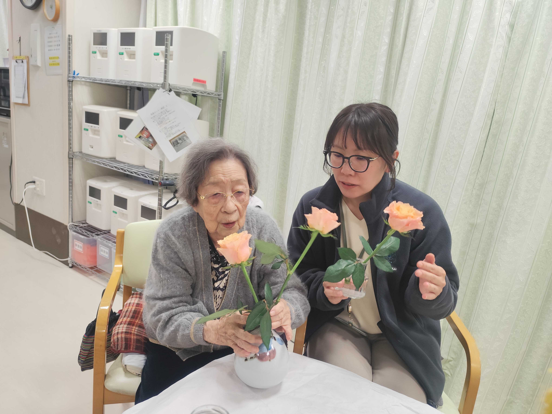先日行われた板橋四葉の開所式でいただいた素敵なお花を、入居者様に生けていただきました♪