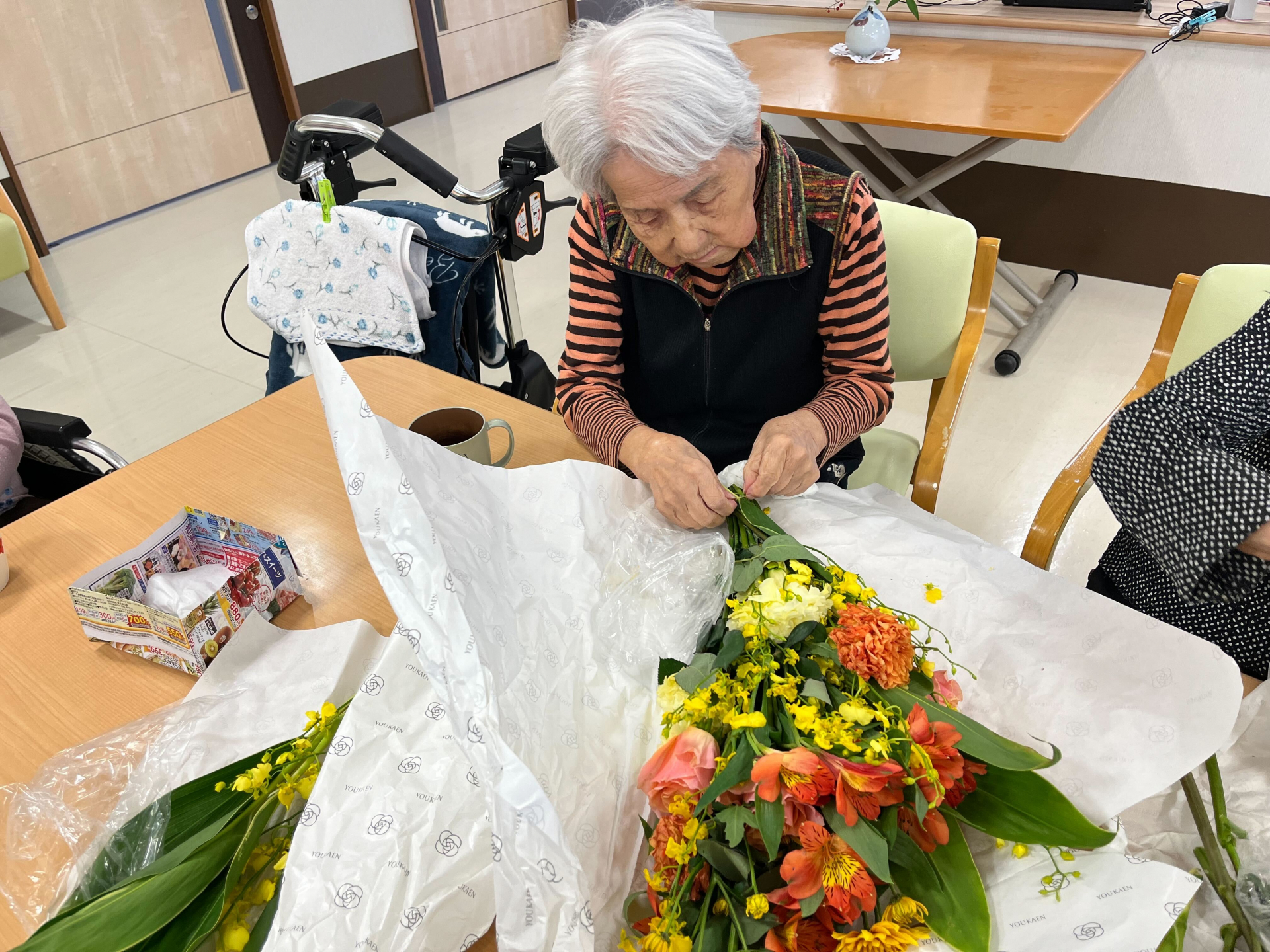 【介護施設 レクリエーション】開所式のお花を使って、生け花活動(*´▽`*)