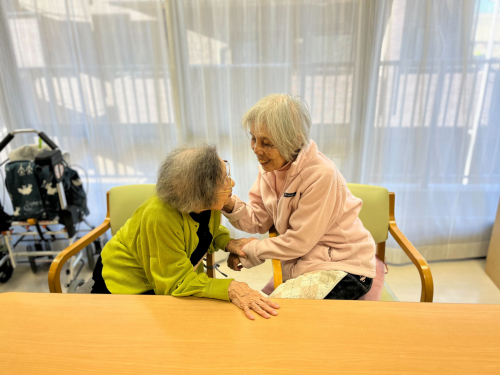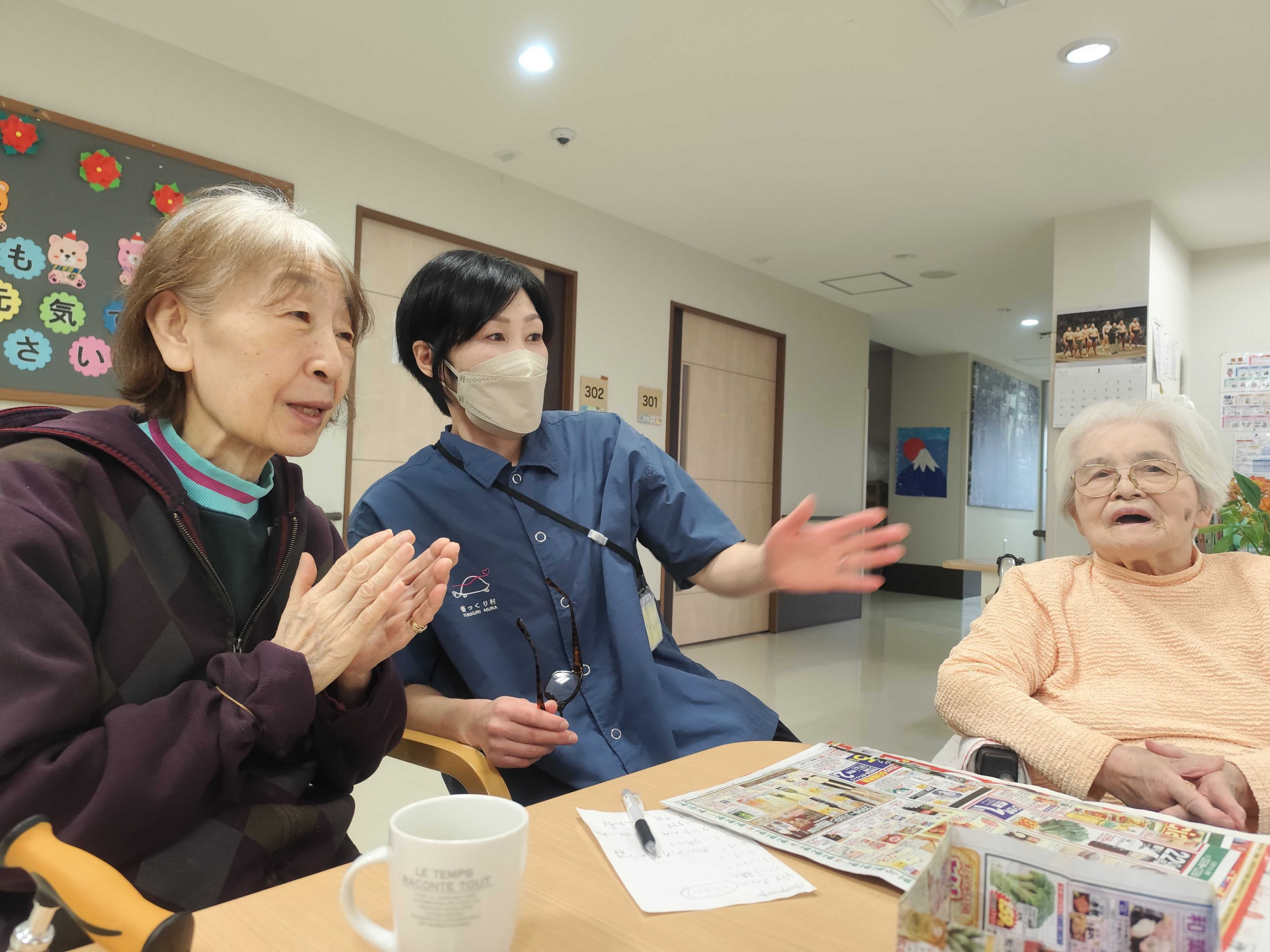 緊張したご様子も見られましたが、職員や他の入居者様の声掛けに、少しづつ表情がやわらぎ、みんなでお話をして過ごしました。