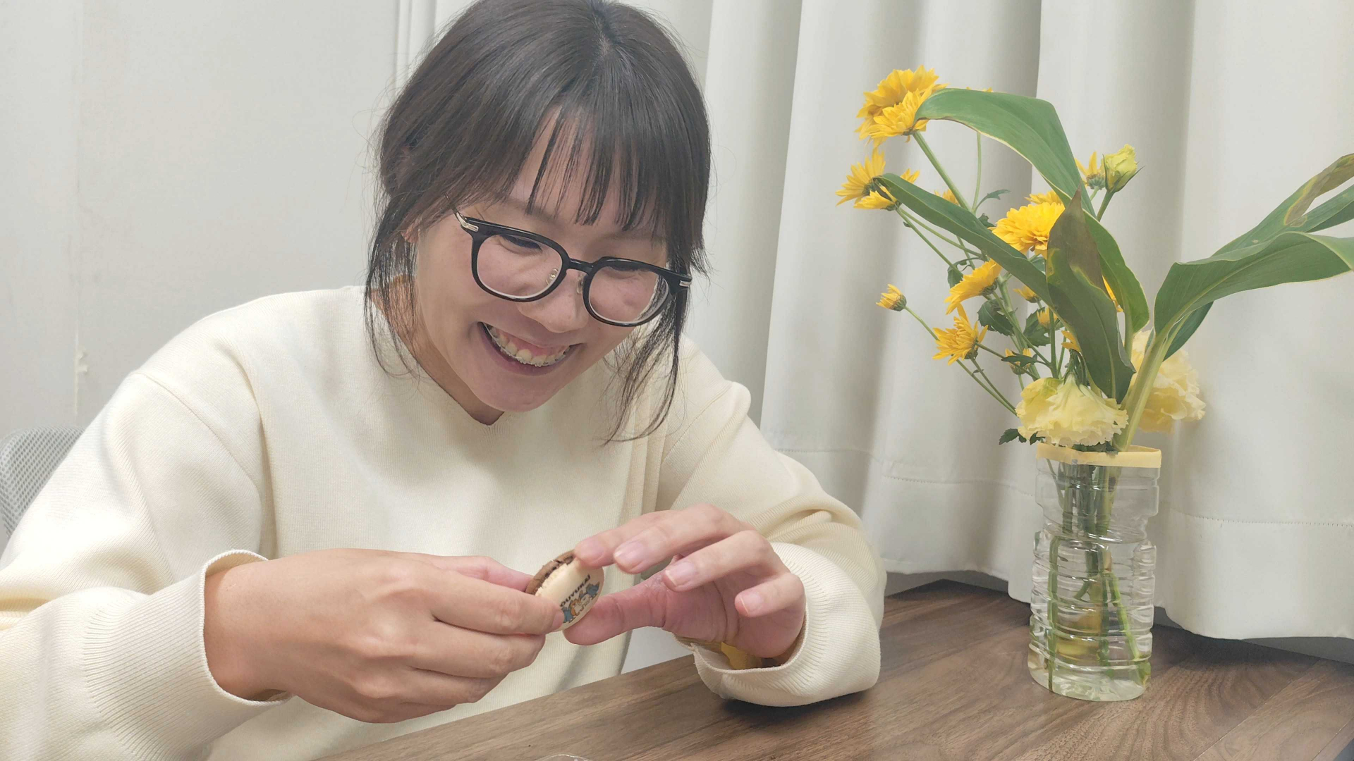 業務終了後、主任さんと一緒にマカロンの試食タイム!