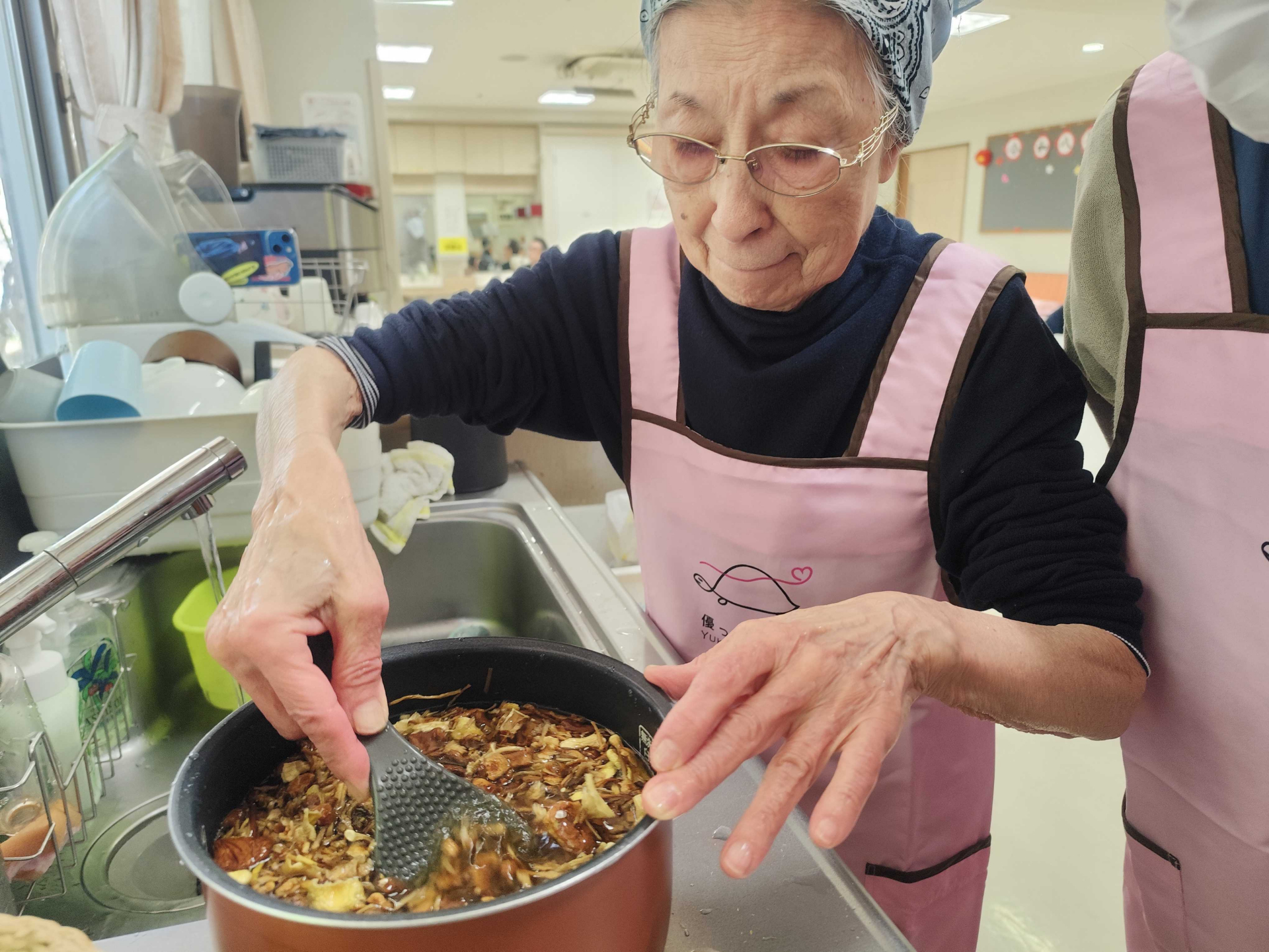 お米を研ぐ、具材を混ぜる手つきはとても慣れたもの。