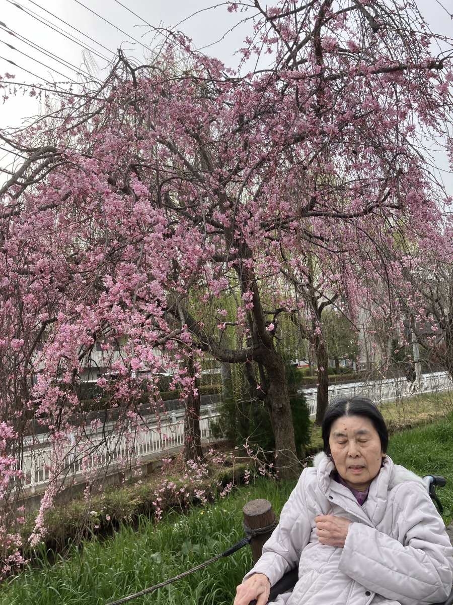 【グループホーム 日常の様子】しだれ桜の下で春のお散歩