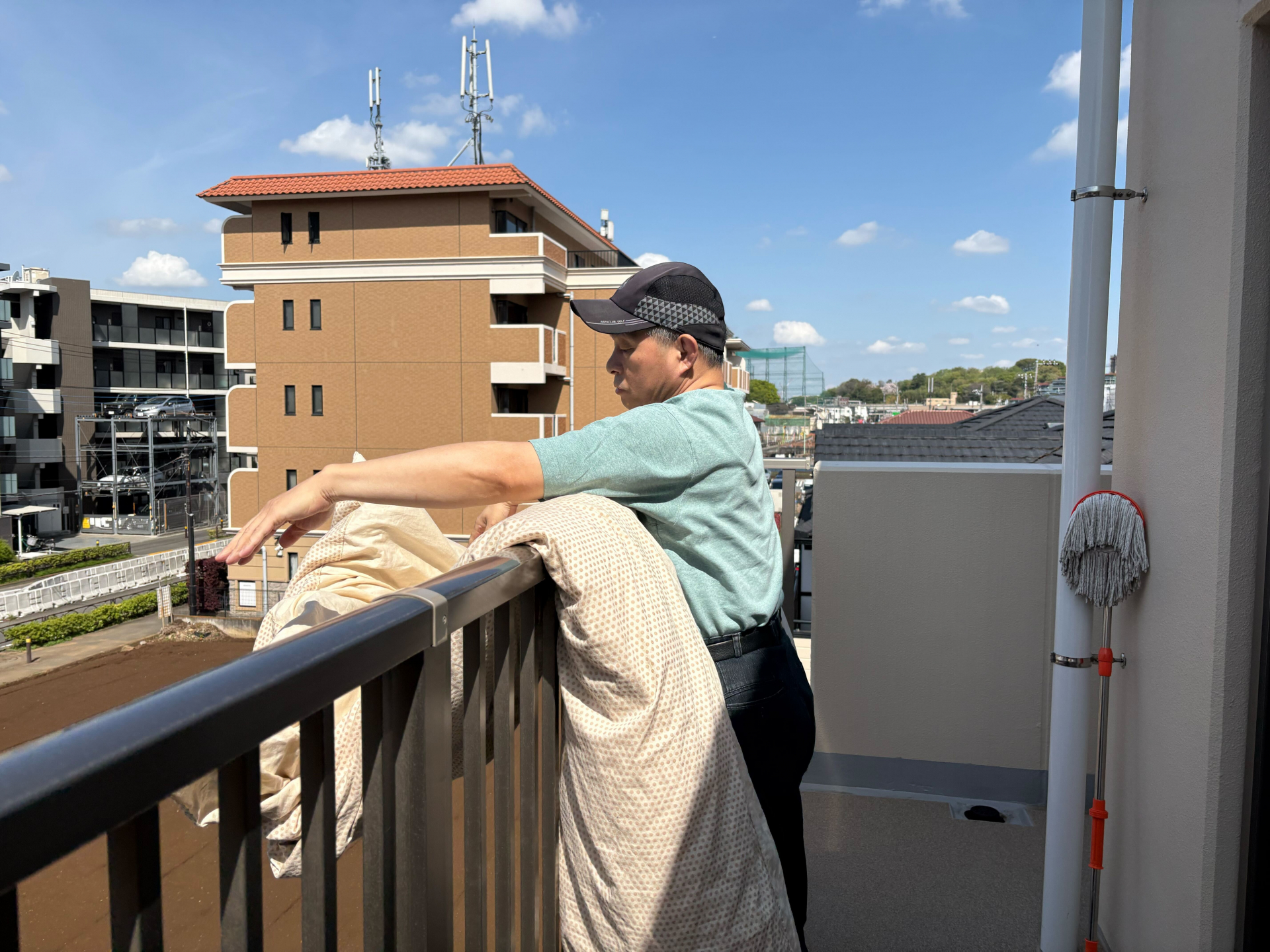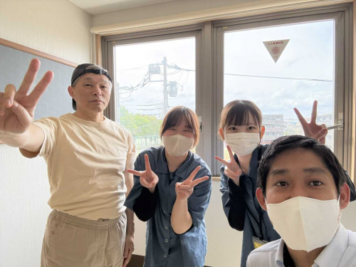 こちらも職員と一緒に布団を外に運びに行きました!