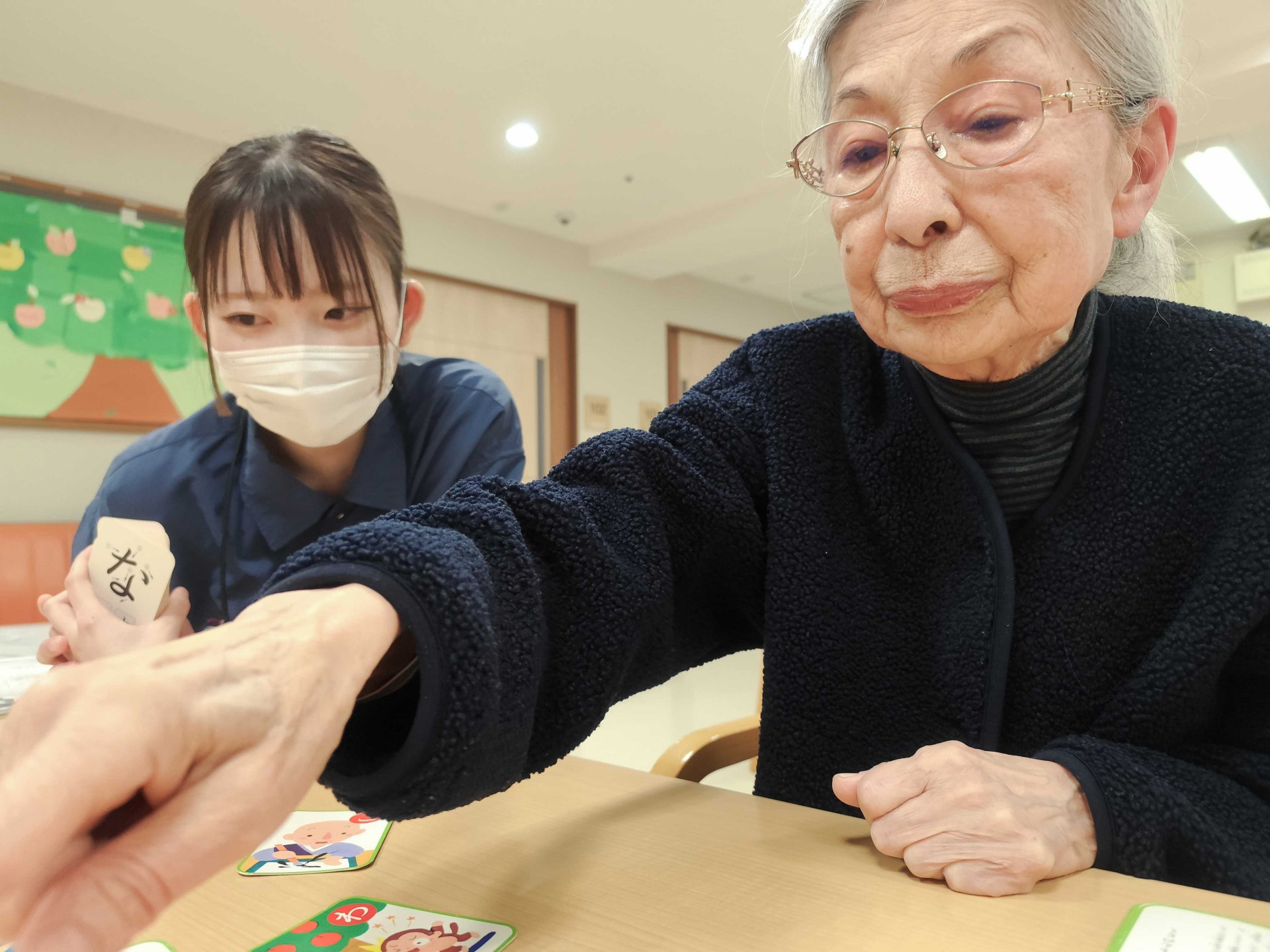 「はい!」と勢いよく札を取られる場面もあり、思わず笑顔がこぼれるひとときもたくさん見られました。周りの方も一緒になって盛り上がり、会場は終始にぎやかであたたかな雰囲気に包まれていました。