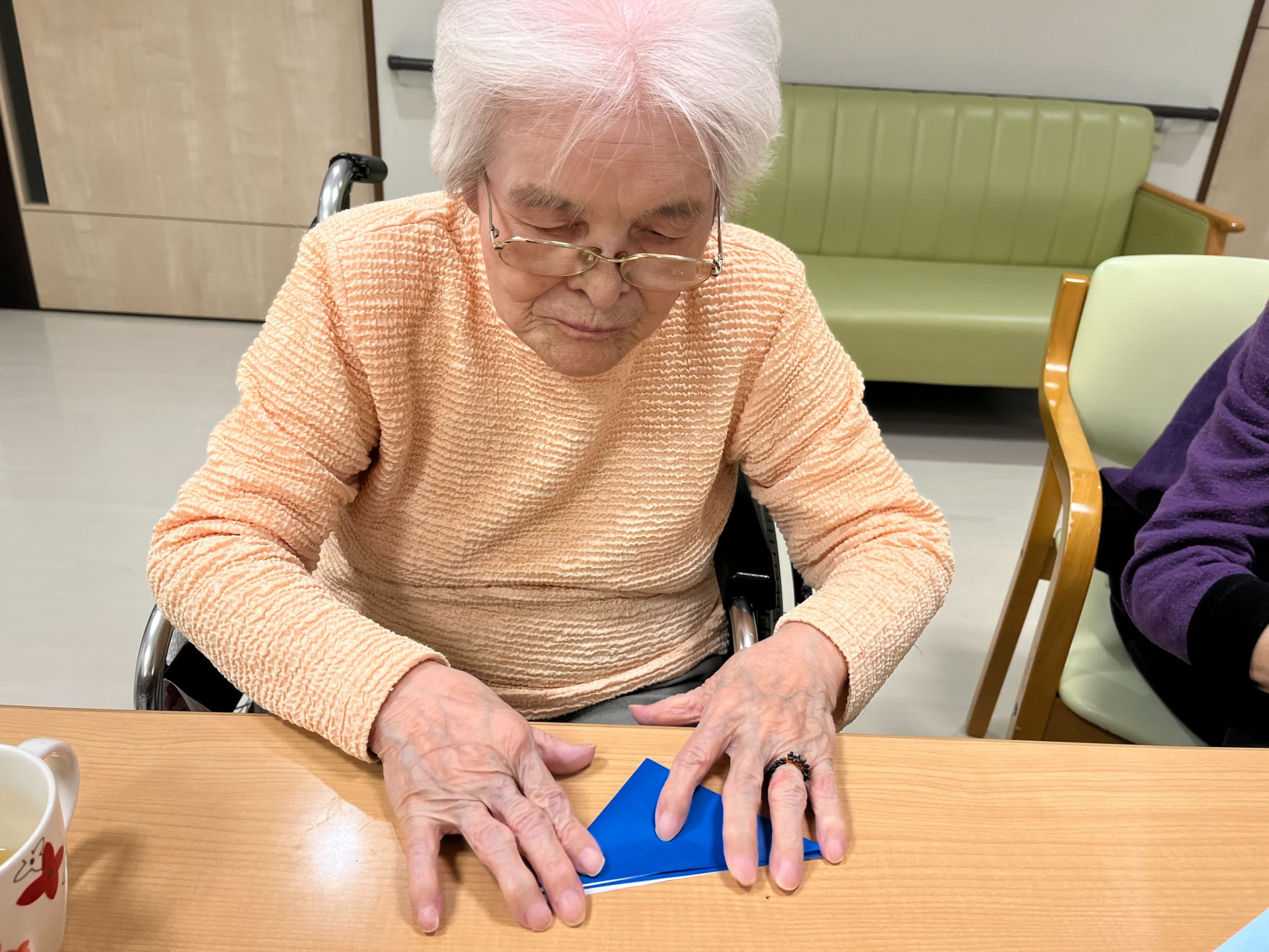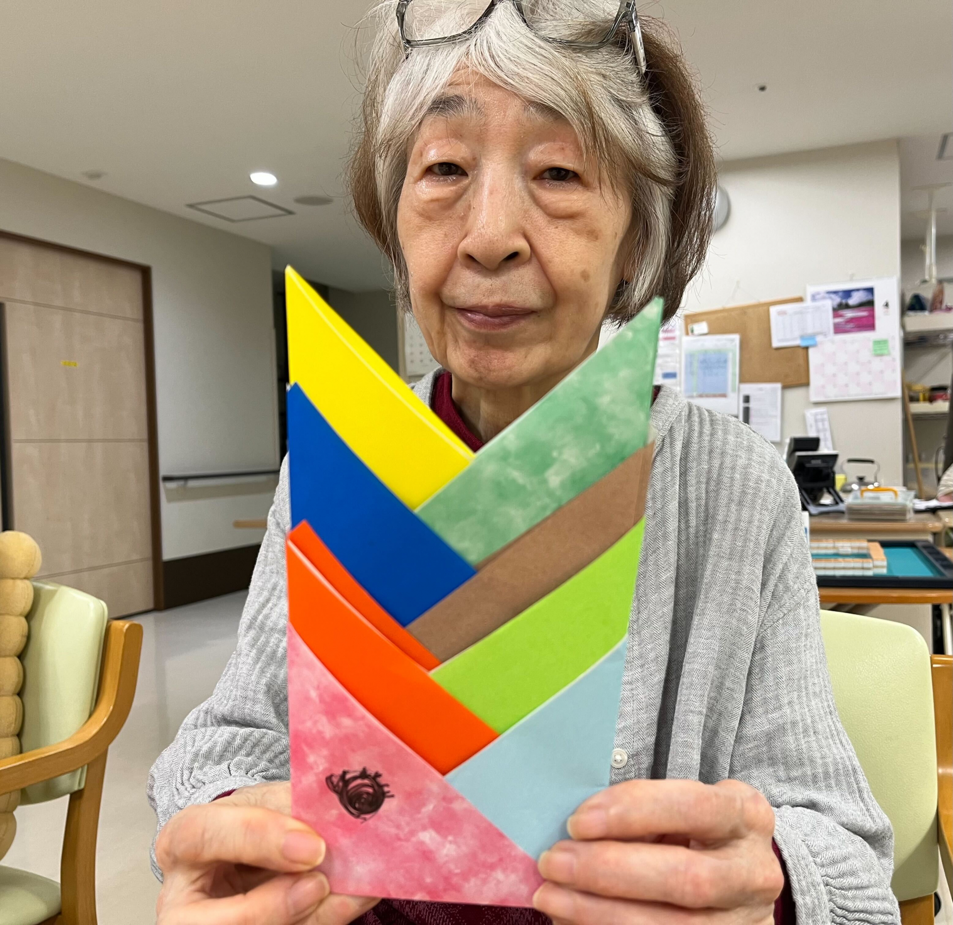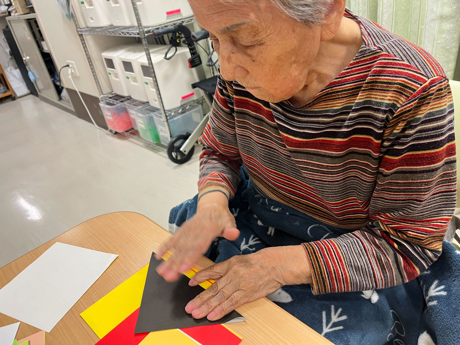 みんなで三角形にひたすら折っていただきます~