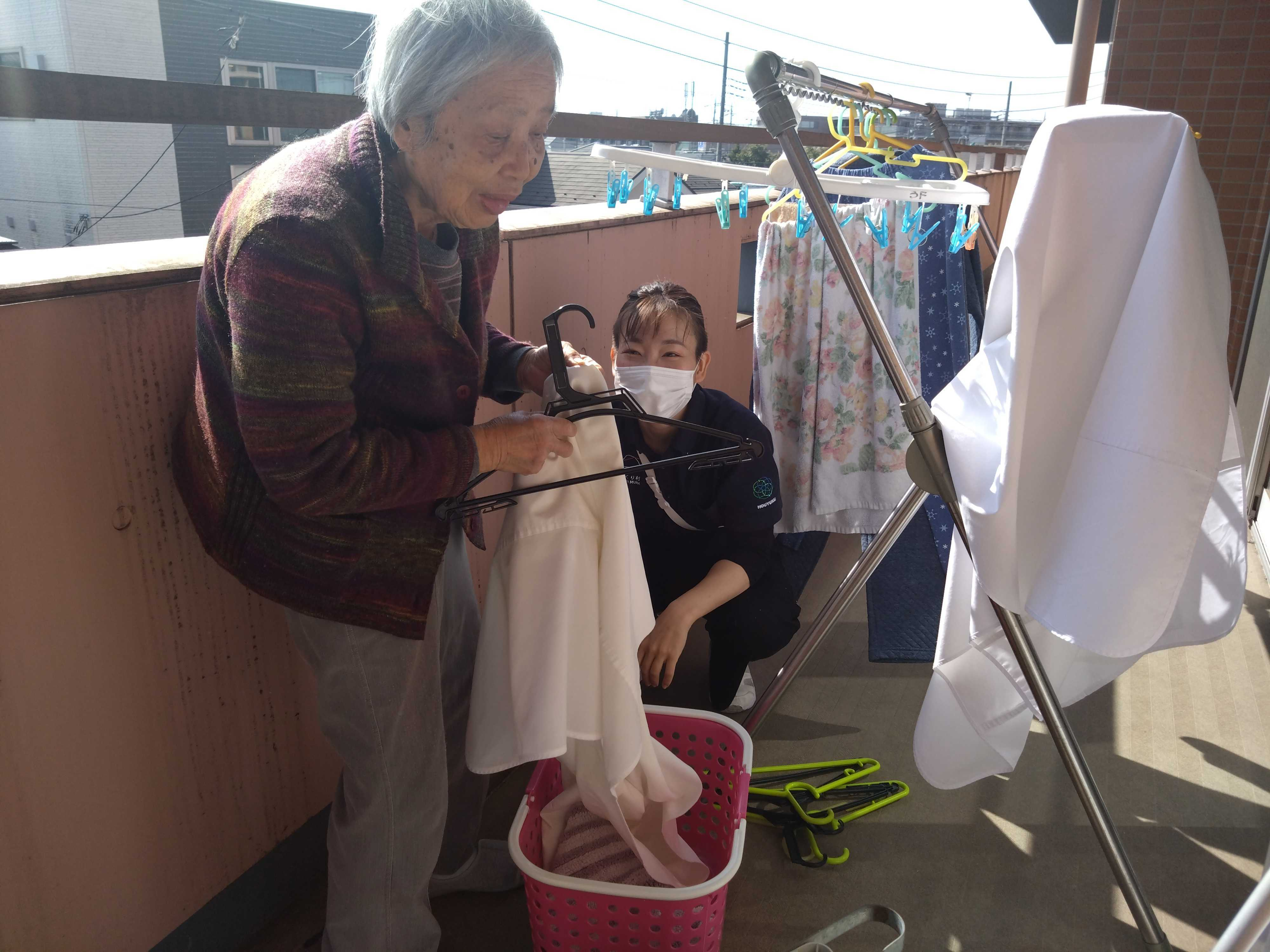 本日は少し風が強かったですが、W様と一緒に洗濯物を干しました!