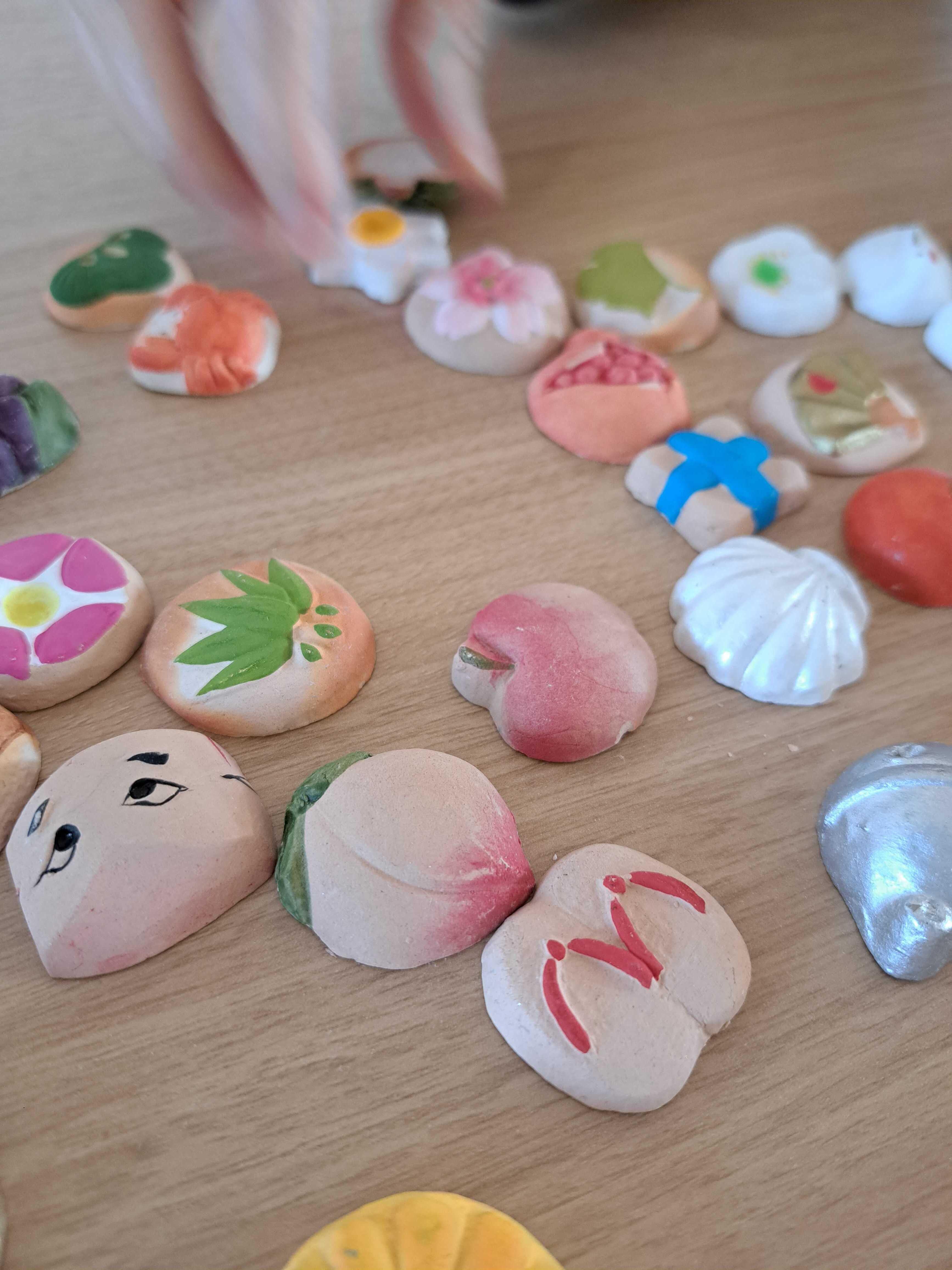 江戸時代に作られたそうですよ!明治時代に入ると、面子の素材は鉛、やがて木や紙へと変遷してゆき、それらが普及するようになると、泥面子は俄然姿を消すようになった。今では青森県弘前市などで僅かに製造されるのみとなっているそうです。