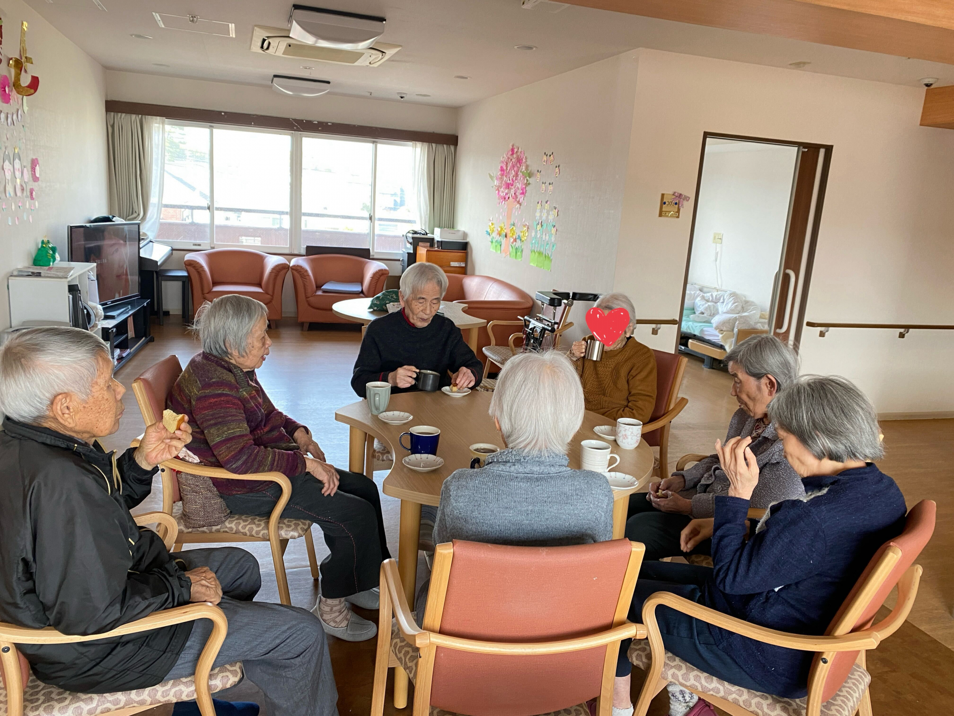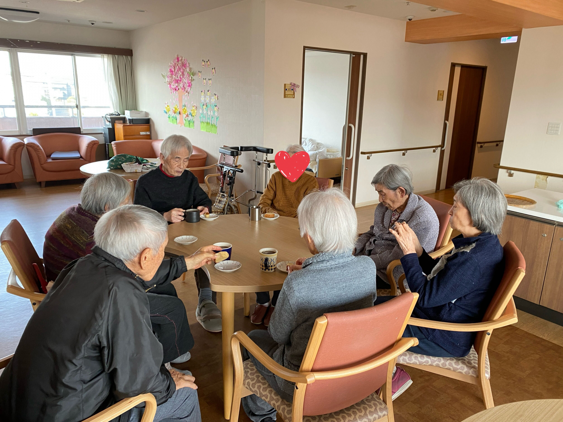 工芸を終わって、これからおやつの時間になりますので、自分の自席に戻りましょうと声掛けすると「これでいいんじゃない?」「たまには一緒に座って食べるといいかな~」「そうだね!もっと仲良くしたらいいね!」と声が出ました。