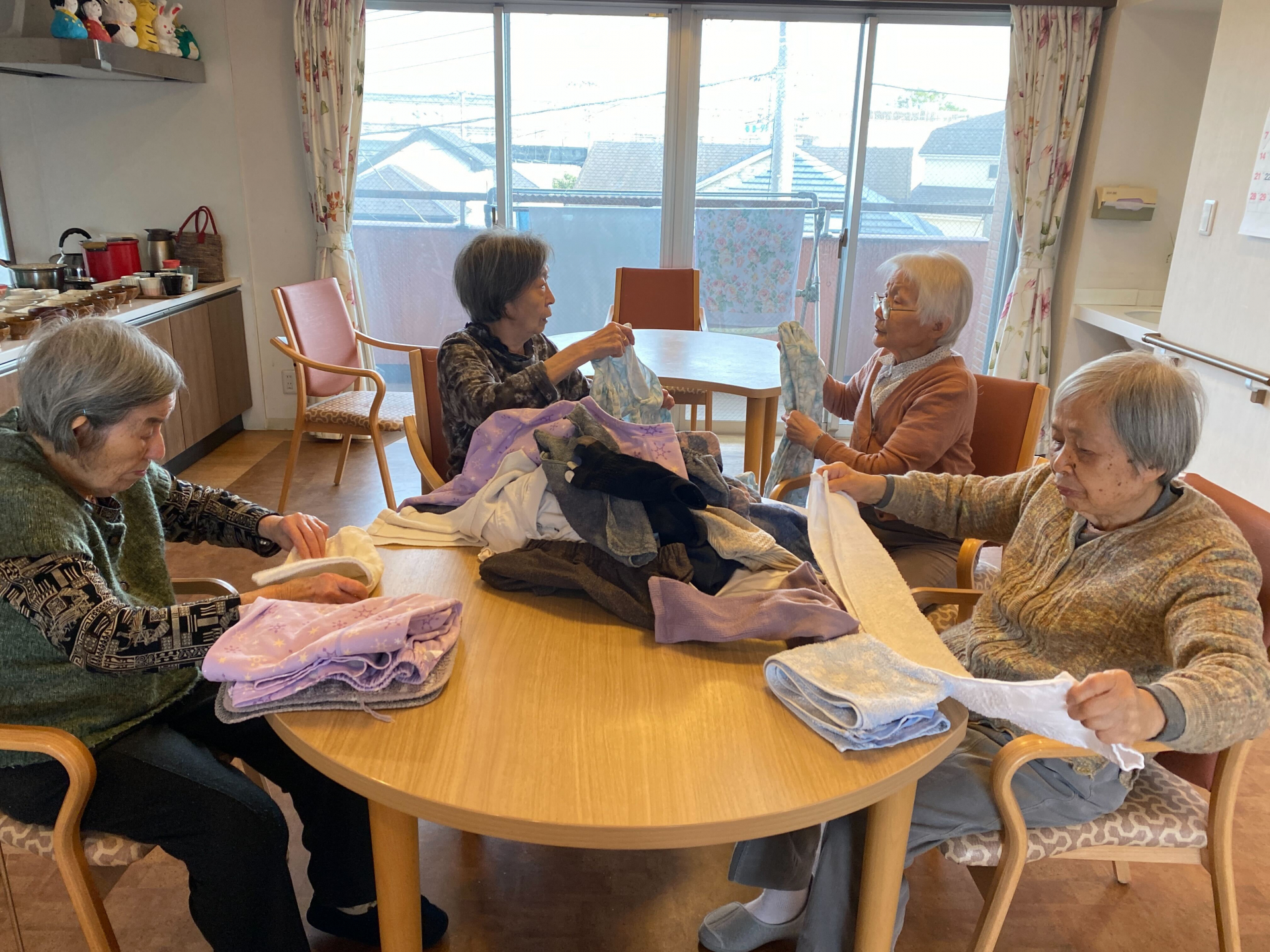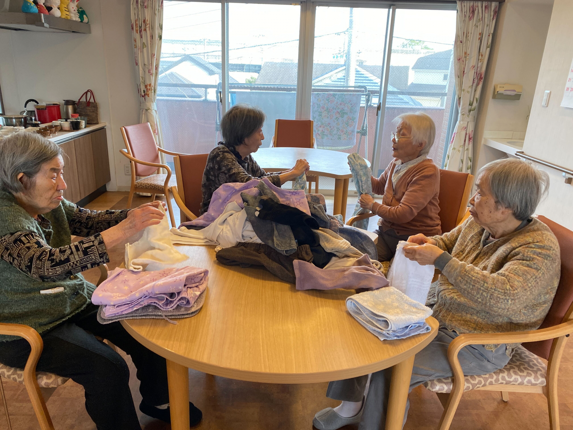 職員がお仕事して頂けませんかと尋ねると「何の仕事?」「いいですよ。暇だから、私使ってもいいよ」とご親切にお答えになりました。乾いている洗濯を畳んでくださり、