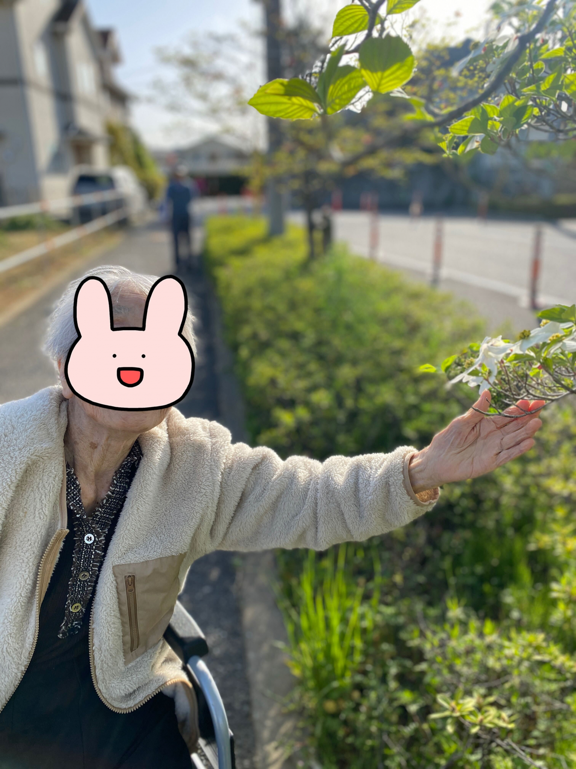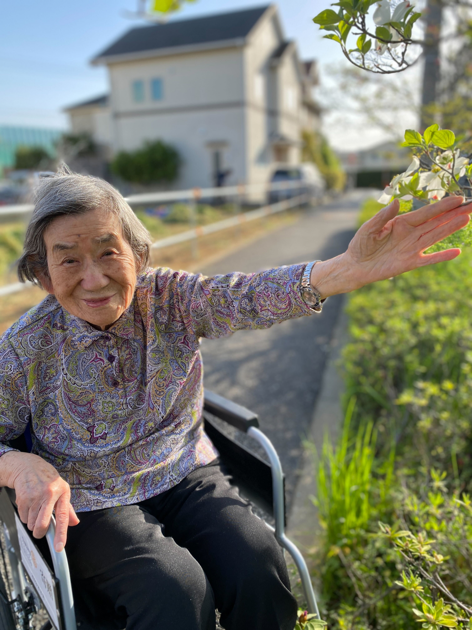 咲いている花をみると「うわああ~きれい~きれい」「この色はいいねぇ、見たことがないよ」「いい空気だねぇ、暖かくて気持ちいい~」とすごく嬉しそうに言ってました。