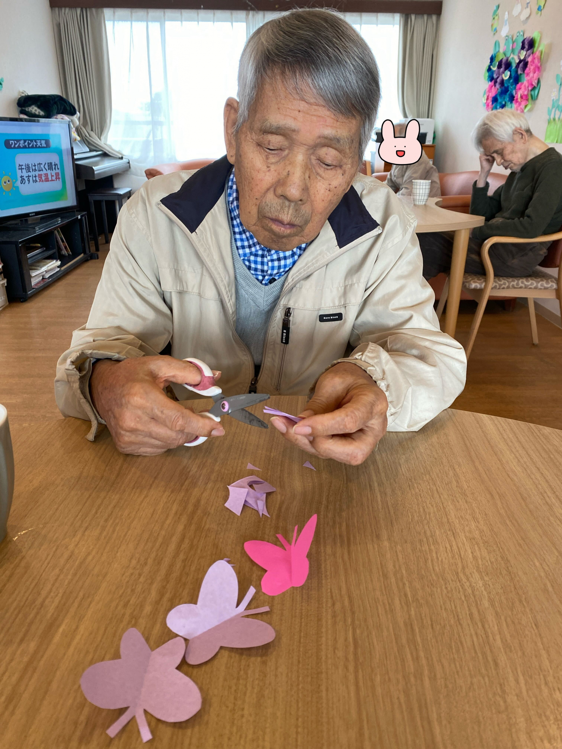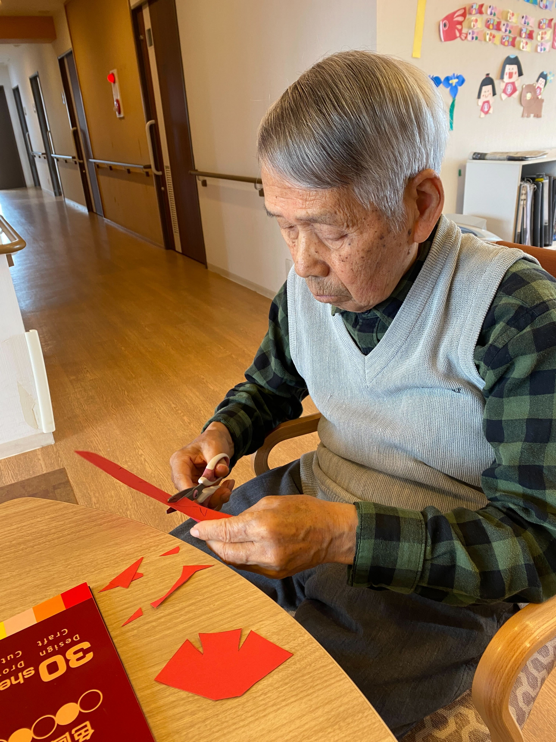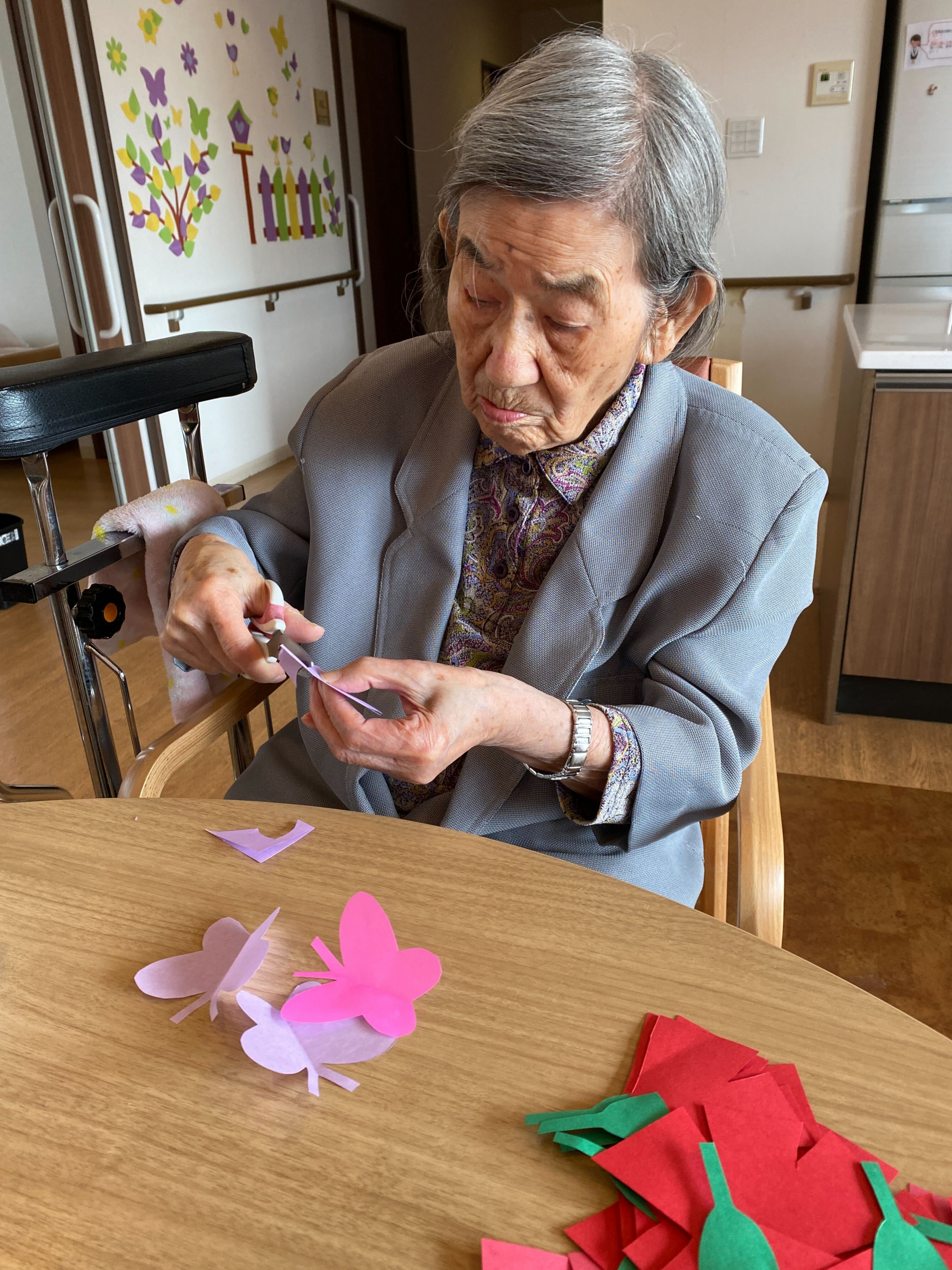 職員がこれから母の日ですので、カーネーションのお花を作ってみましょうと言うと「いいね!最高のアイデアだねぇ」と喜んでました。